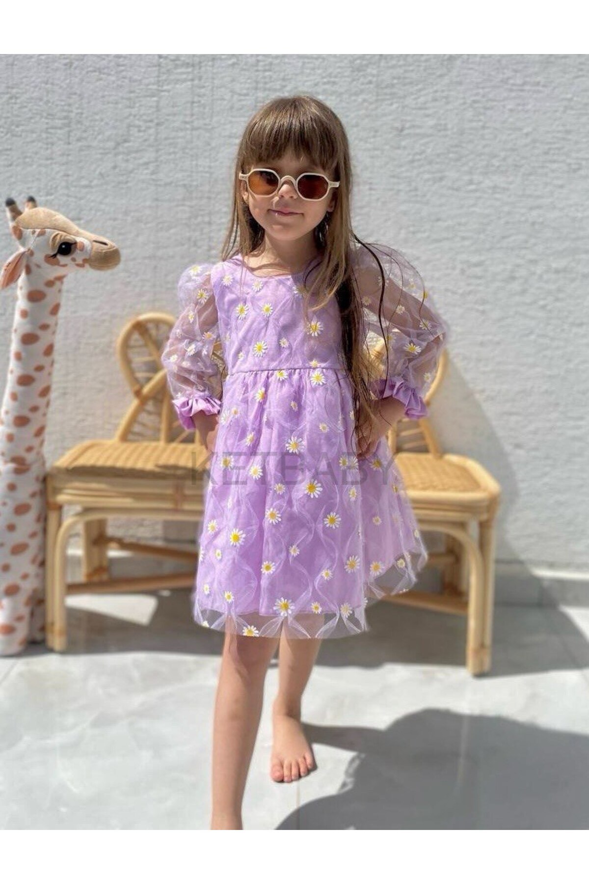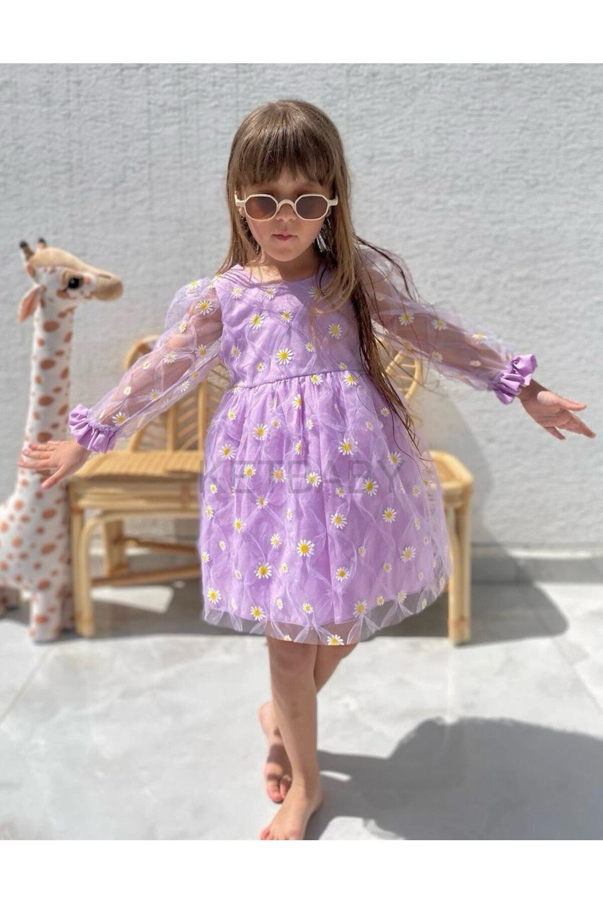 Kız Çocuk Papatya Desenli Uzun Kol Elbise Kız Çocuk Papatya Desenli Uzun Kol Elbise PN014 4-5 Yaş