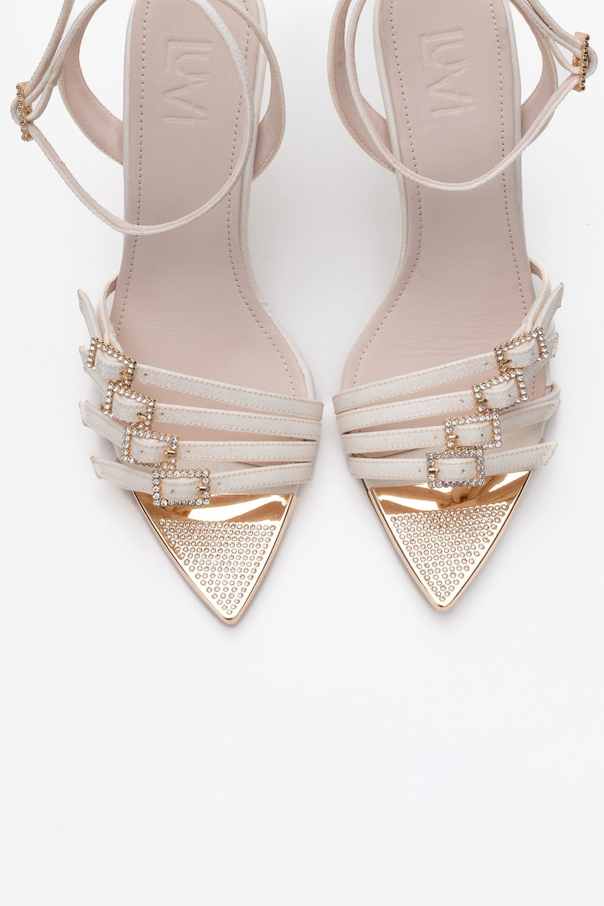 AURO Bej Saten Taşlı Tokalı Kadın Topuklu Ayakkabı AURO Bej Saten Taşlı Tokalı Kadın Topuklu Ayakkabı 225-1127 40