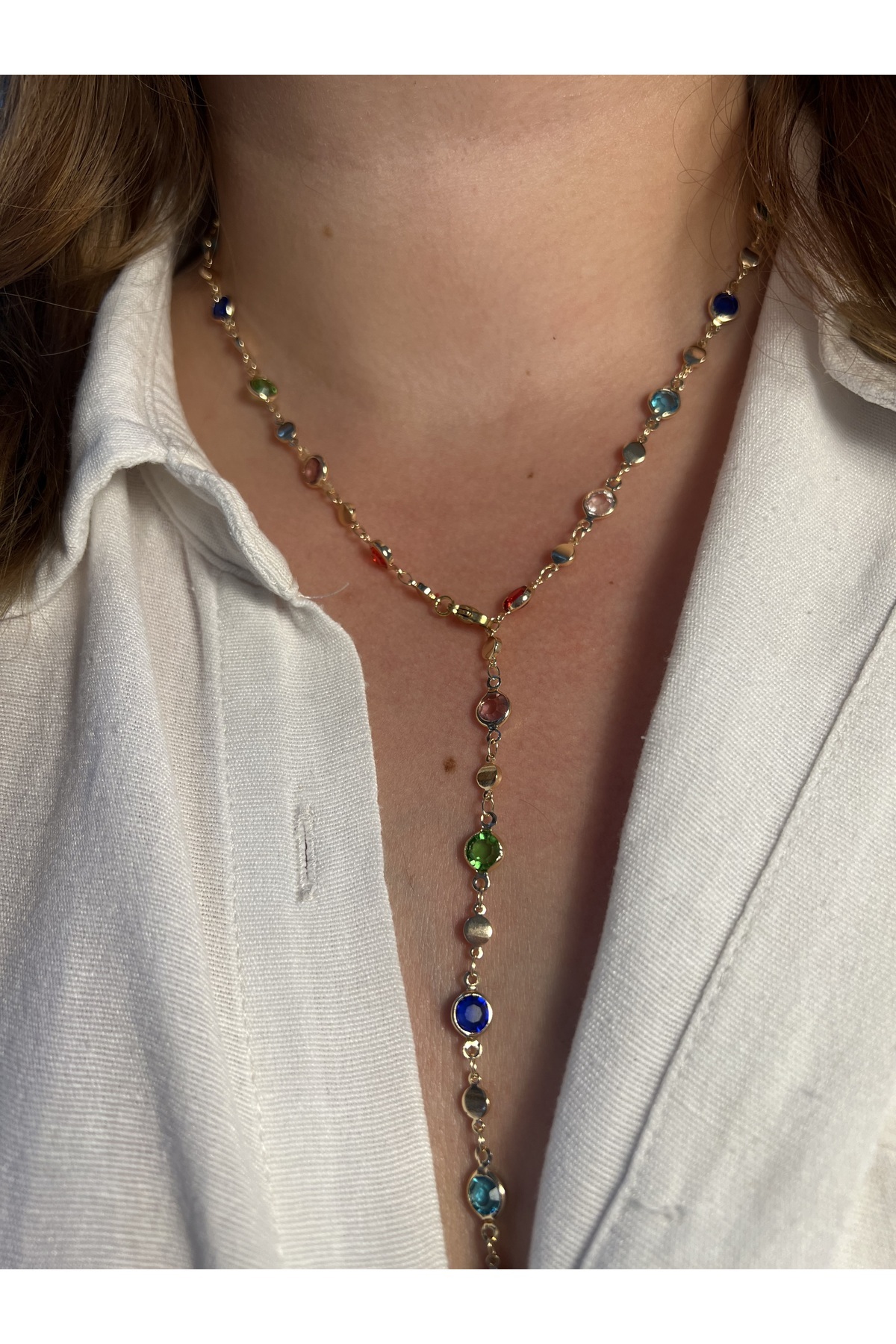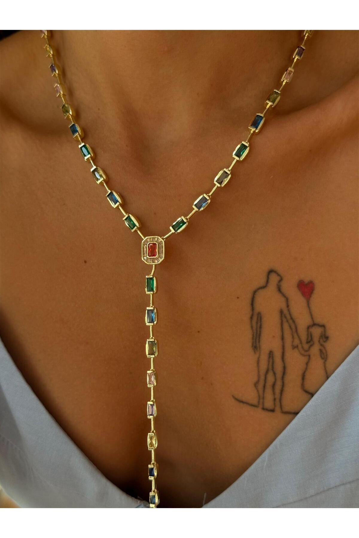 Renkli Taşlı Gold Y Kolye Renkli Taşlı Gold Y Kolye ykolyekalpgold تک سایز