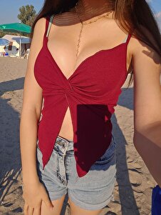 Kadın İnce Askılı Asimetrik Kesim Burgu Detaylı Crop Bluz Kadın İnce Askılı Asimetrik Kesim Burgu Detaylı Crop Bluz asimetrik_bluz L