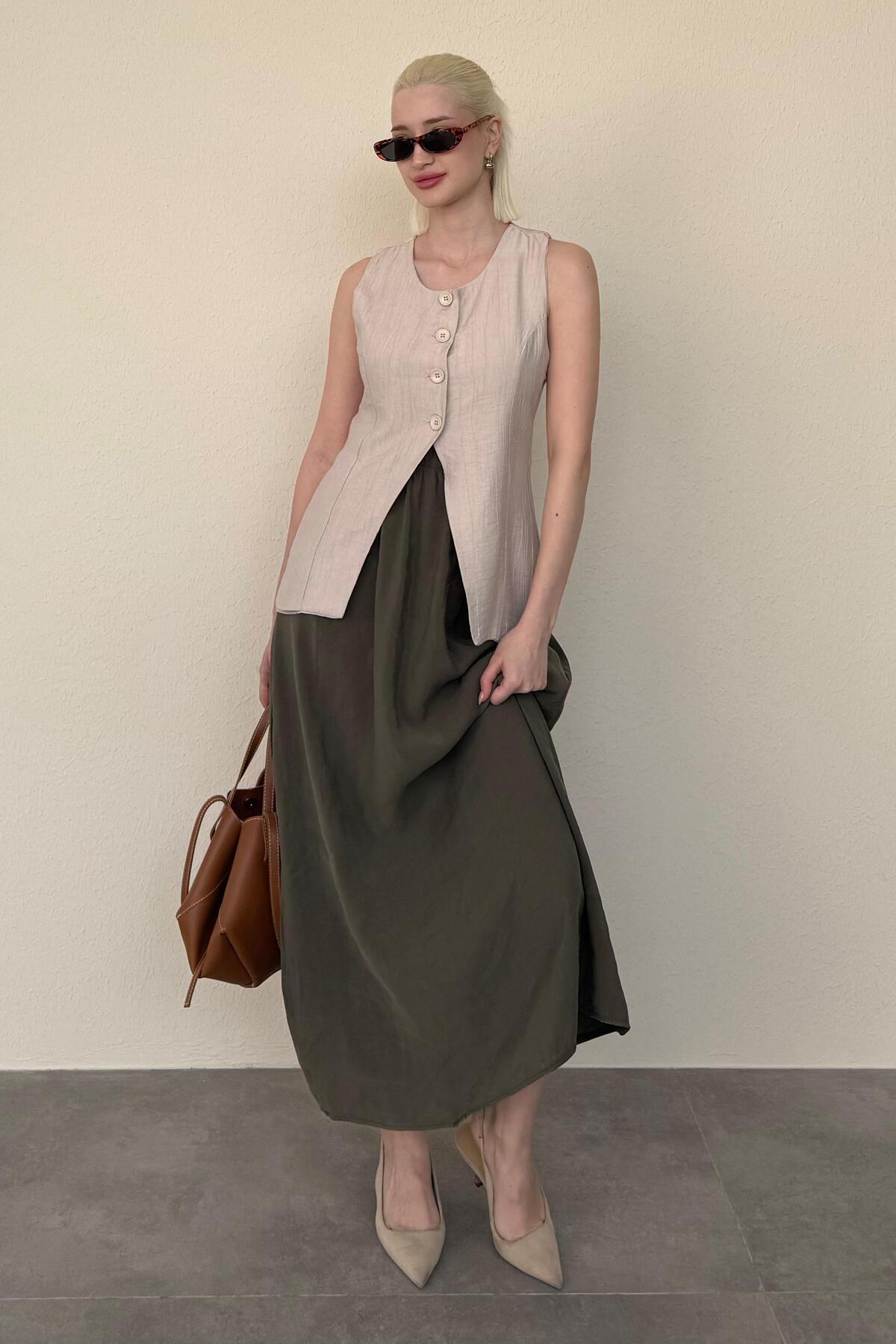 Taş Rengi Bisiklet Yaka Kadın Uzun Yelek Mg2331 Taş Rengi Bisiklet Yaka Kadın Uzun Yelek Mg2331 L