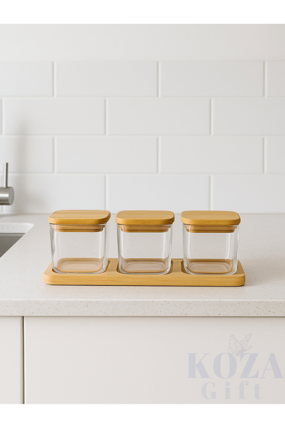 3'lü Cam Kavanoz Seti Ahşap Kapaklı Bambu Standlı Baharat Kuruyemiş Saklama Kabı Minimalist 3'lü Cam Kavanoz Seti Ahşap Kapaklı Bambu Standlı Baharat Kuruyemiş Saklama Kabı Minimalist kyf-3lü-bambu-cam-baharatlık تک سایز