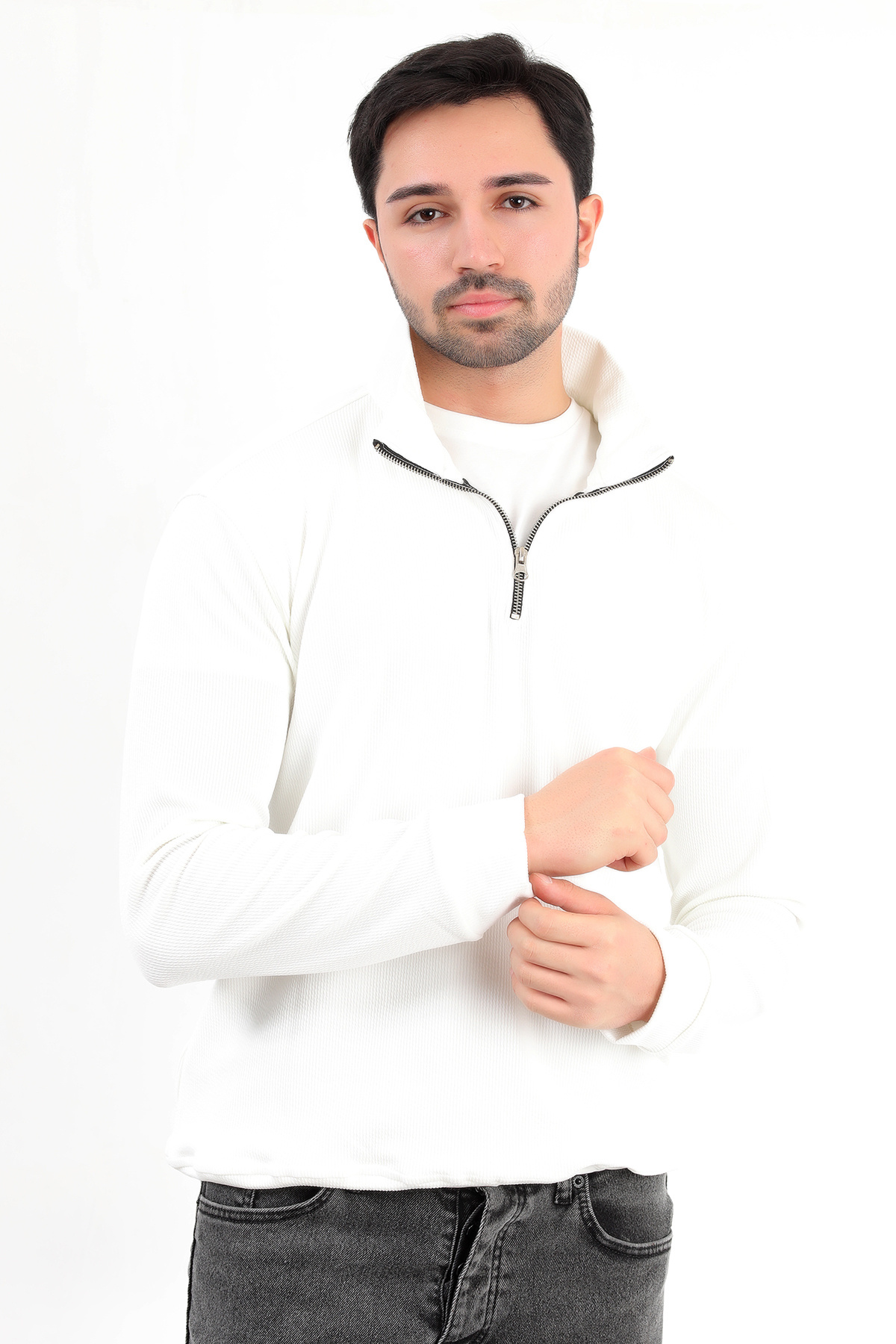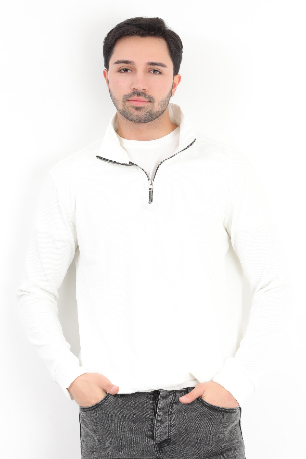 Erkek Ekru Dik Yaka Yarım Fermuarlı Esnek Örme Regular Fit Sweatshirt - 16814 Erkek Ekru Dik Yaka Yarım Fermuarlı Esnek Örme Regular Fit Sweatshirt - 16814 422611126 2XL