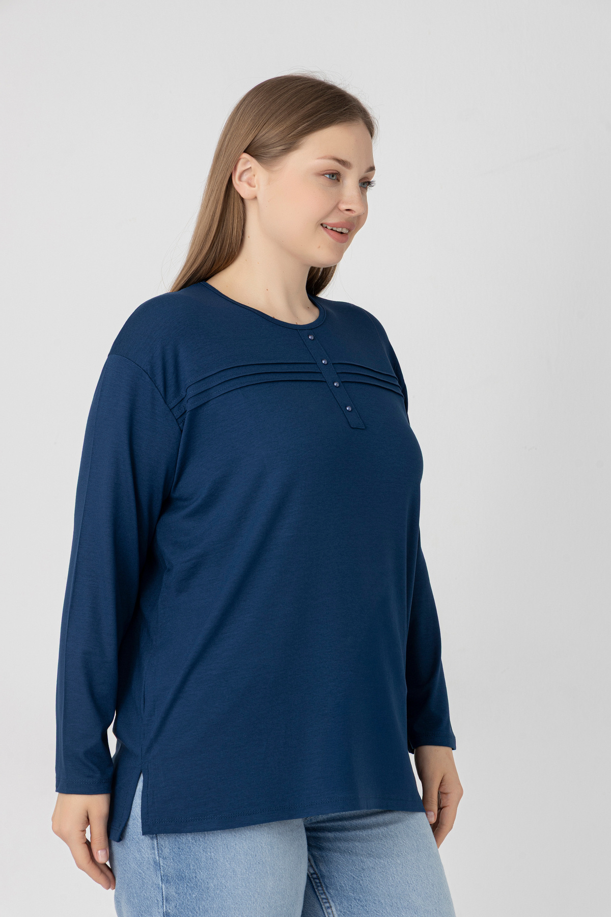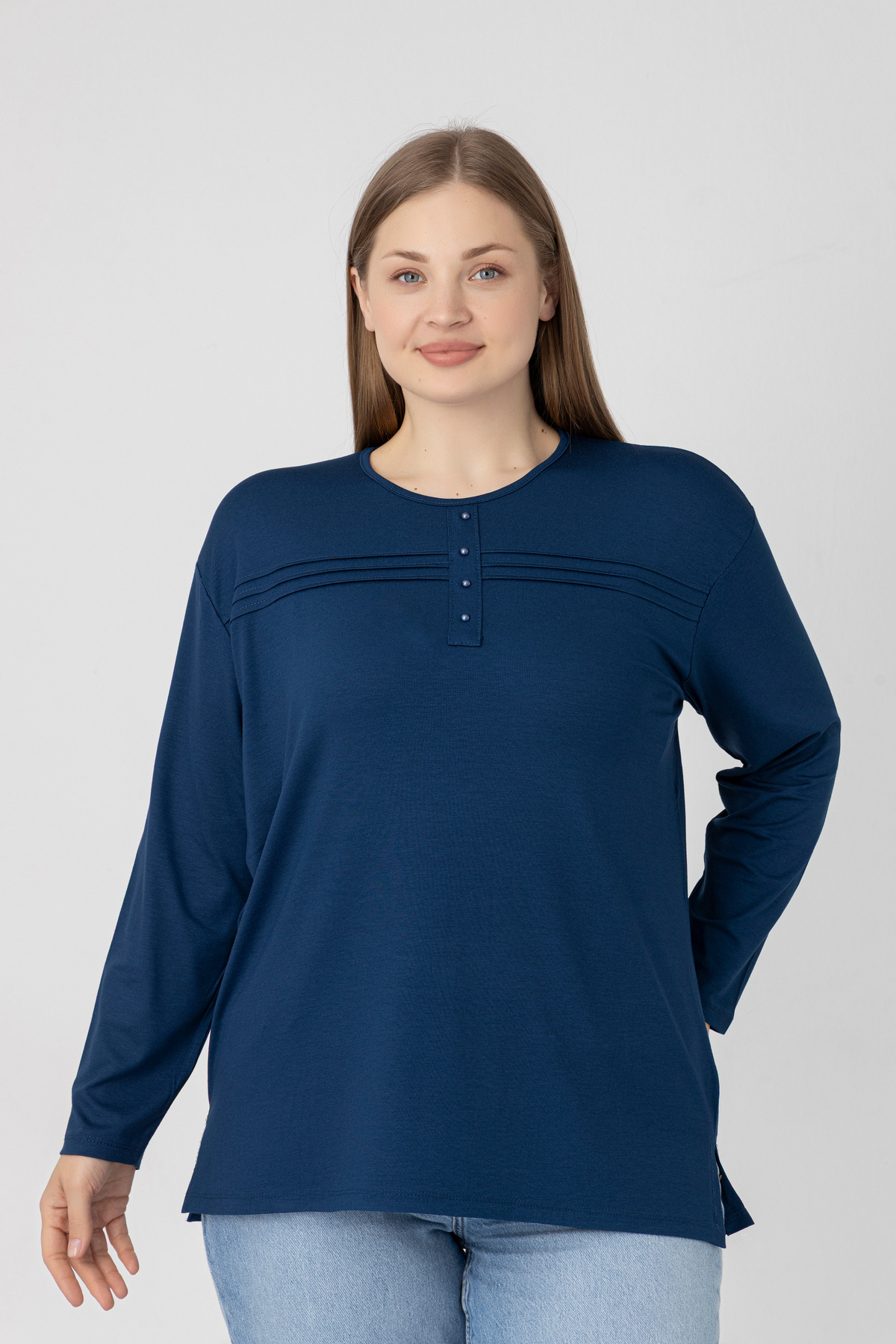 Viskon Kumaş Mini Yırtmaçlı Büyük Beden Uzun Kollu Yaka ve Dügme Detaylı Anne Penye Bluz Viskon Kumaş Mini Yırtmaçlı Büyük Beden Uzun Kollu Yaka ve Dügme Detaylı Anne Penye Bluz 2009 4XL