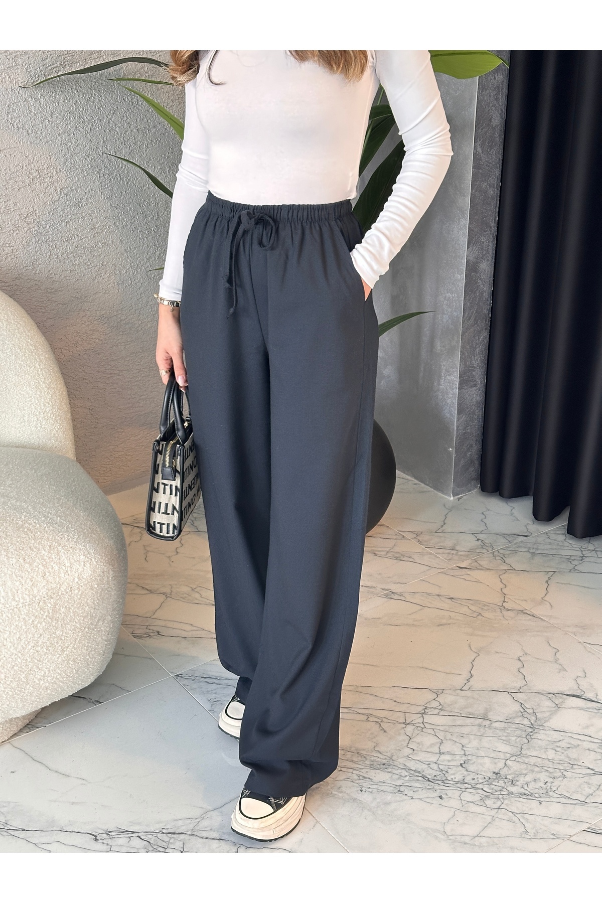 Geniş Paça Pantolon Bağcıklı Bel ve Cepli -LACİVERT Geniş Paça Pantolon Bağcıklı Bel ve Cepli -LACİVERT GNP540P 46