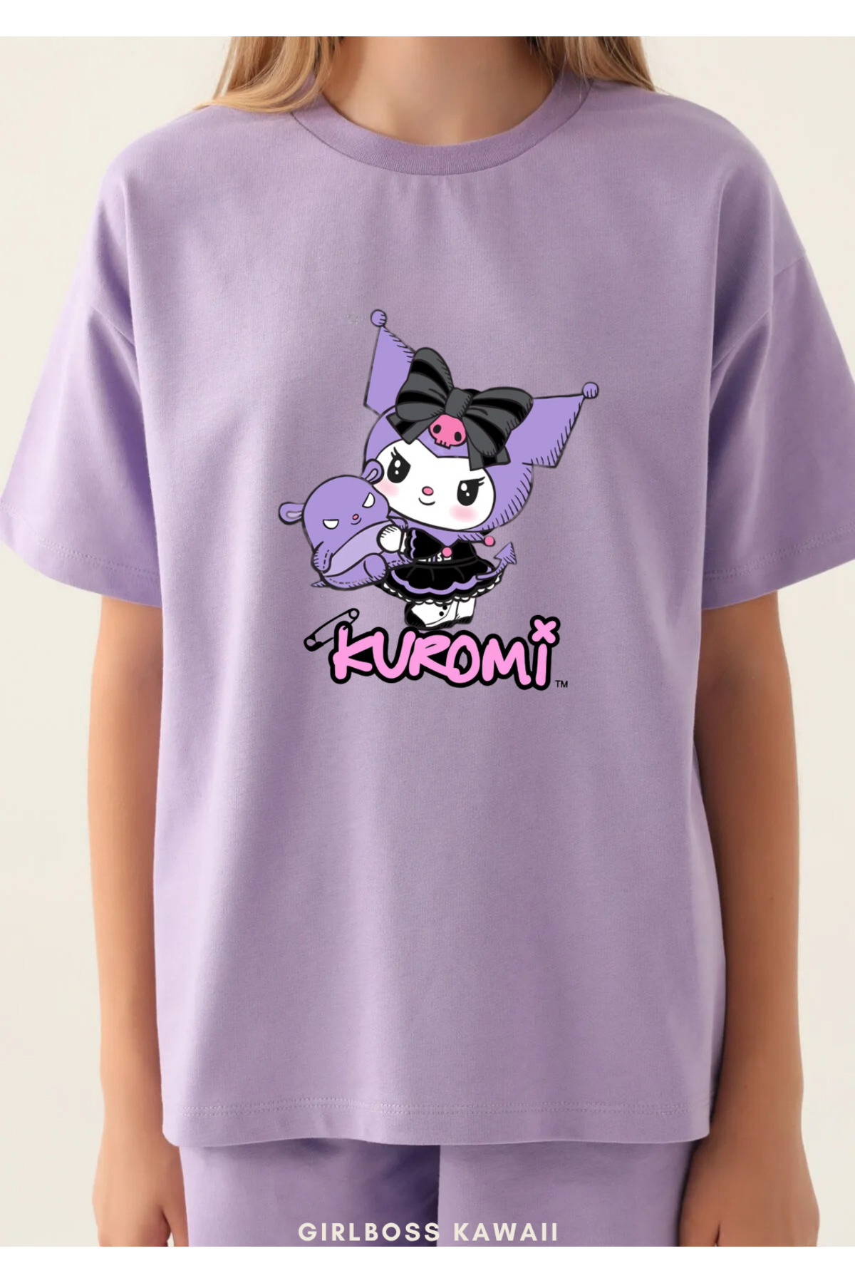 Kuromi çocuk t-shirt lila renk Kuromi çocuk t-shirt lila renk girlbosskuromililatshirt-01 13-14 Yaş