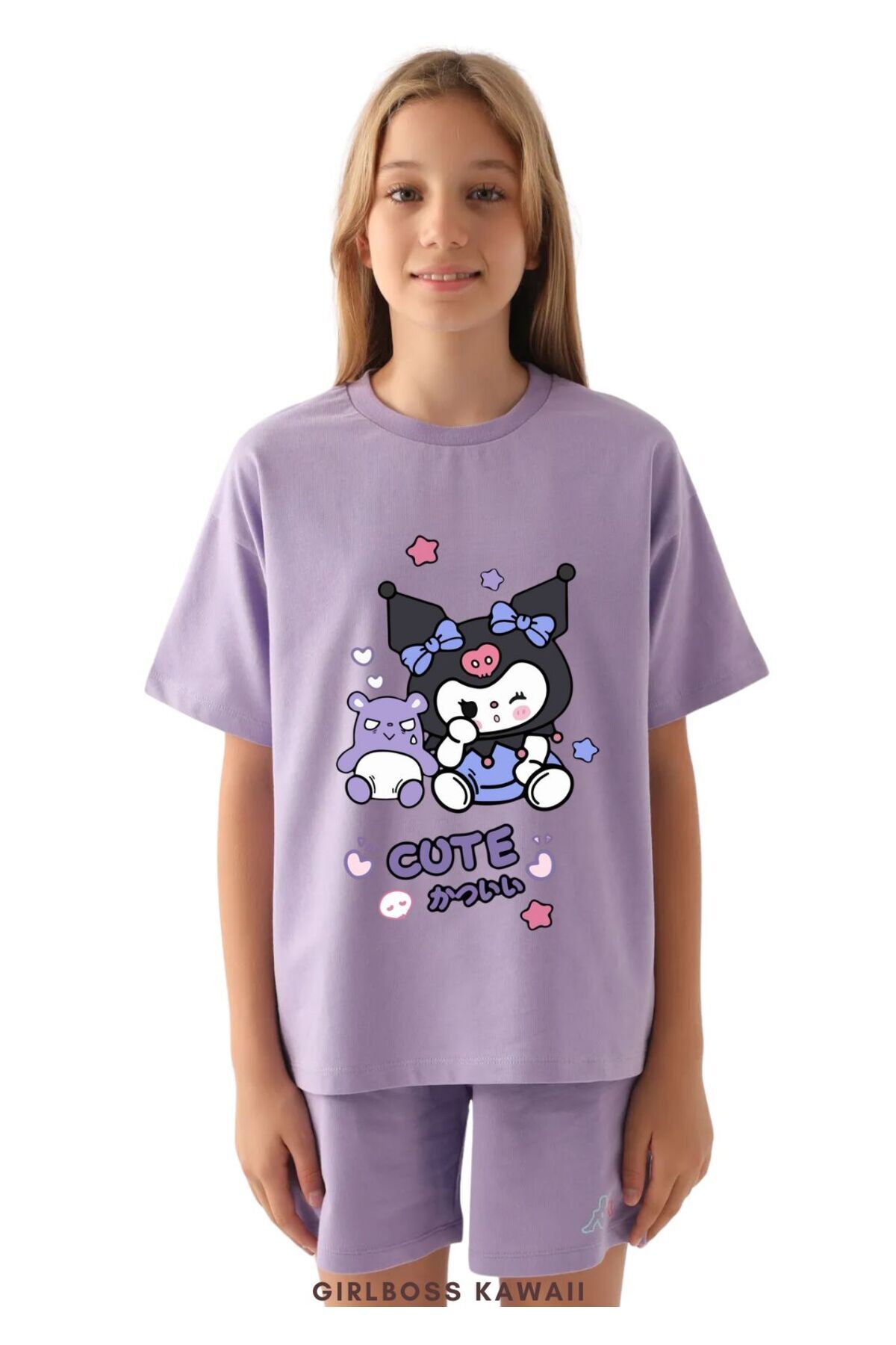 Kuromi t-shirt lila renk serisi Kuromi t-shirt lila renk serisi girlbosskuromililatshirt-01 13-14 Yaş