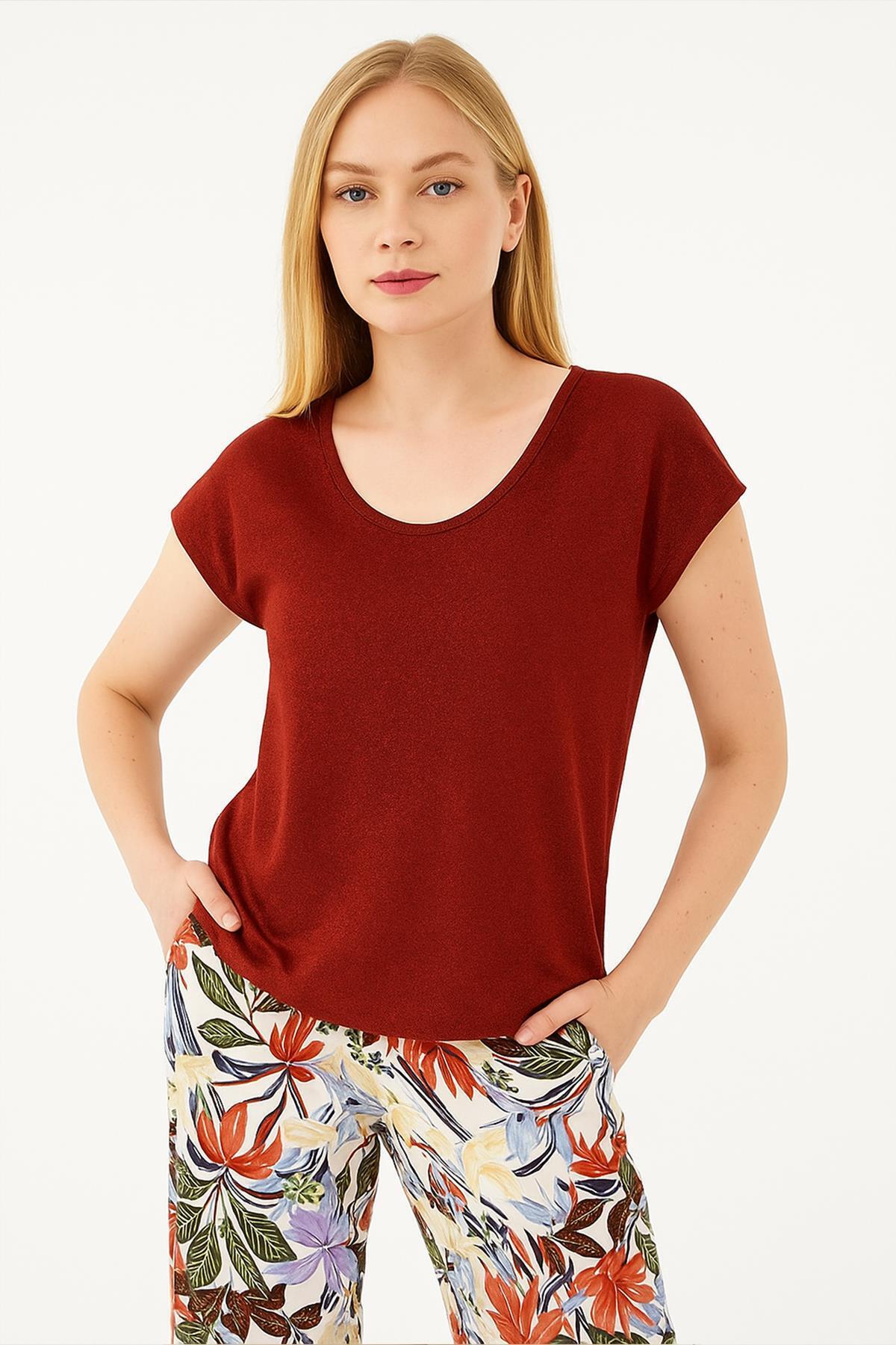 Standart Fit Yuvarlak Yaka Simli Bluz BLUZ 25Y0202K1 Standart Fit Yuvarlak Yaka Simli Bluz BLUZ 25Y0202K1 3XL