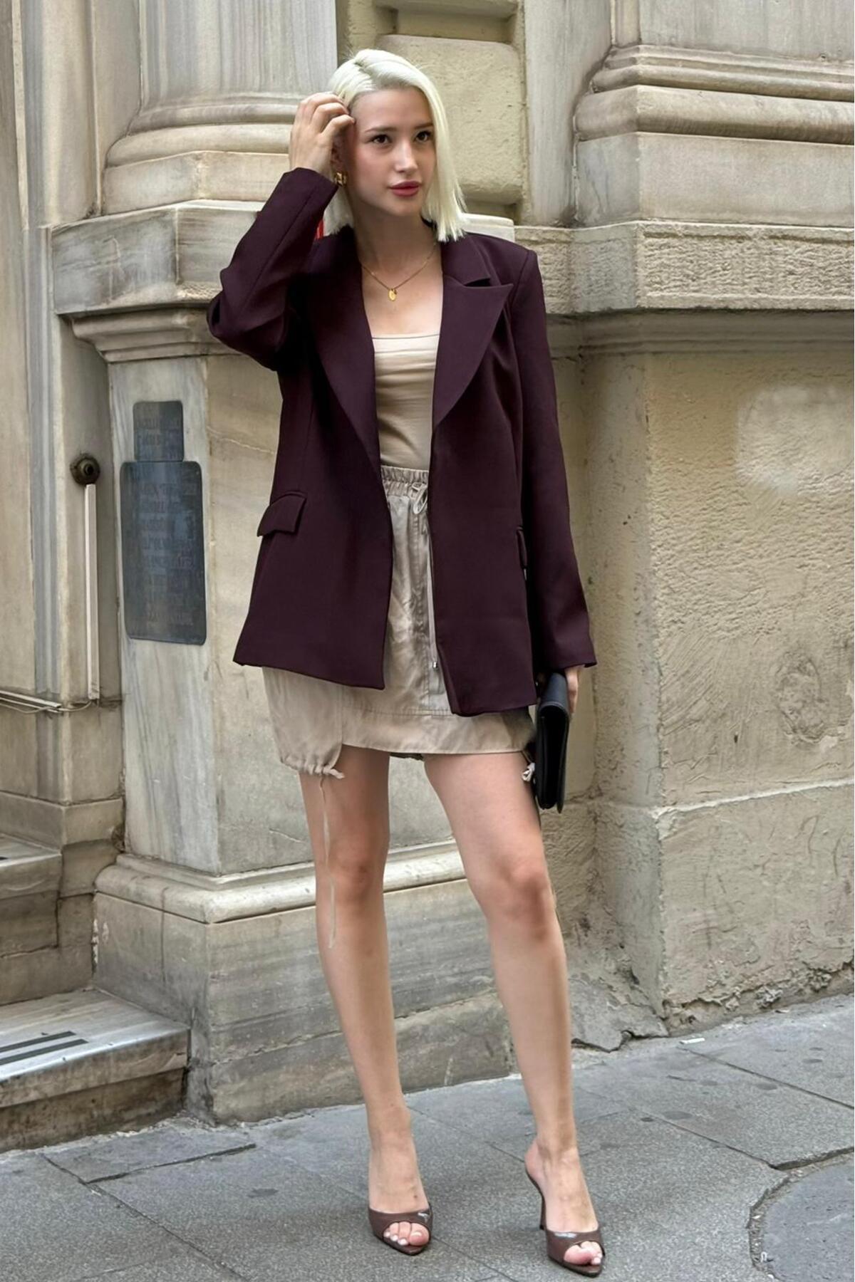 Bordo Vücuda Oturan Kadın Blazer Ceket Bordo Vücuda Oturan Kadın Blazer Ceket BA25Y423 M