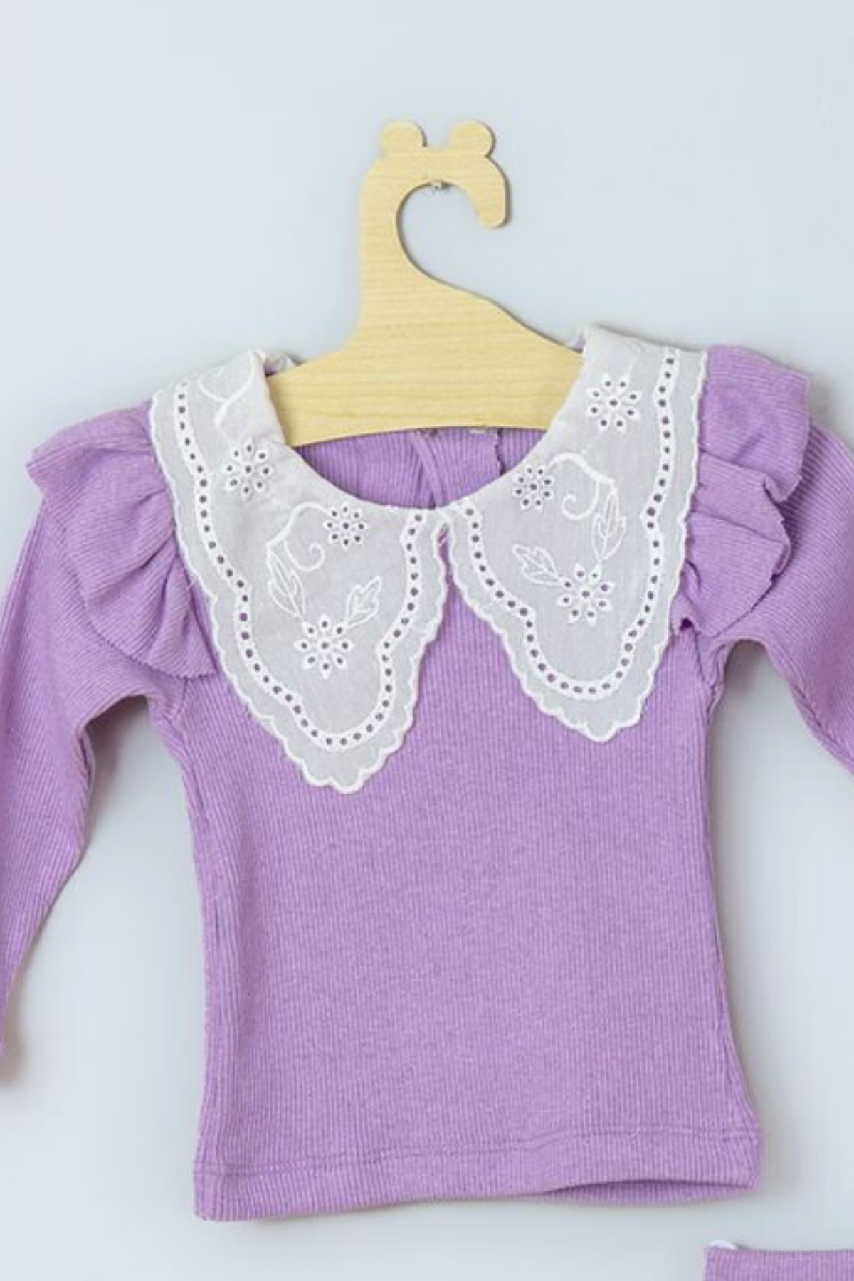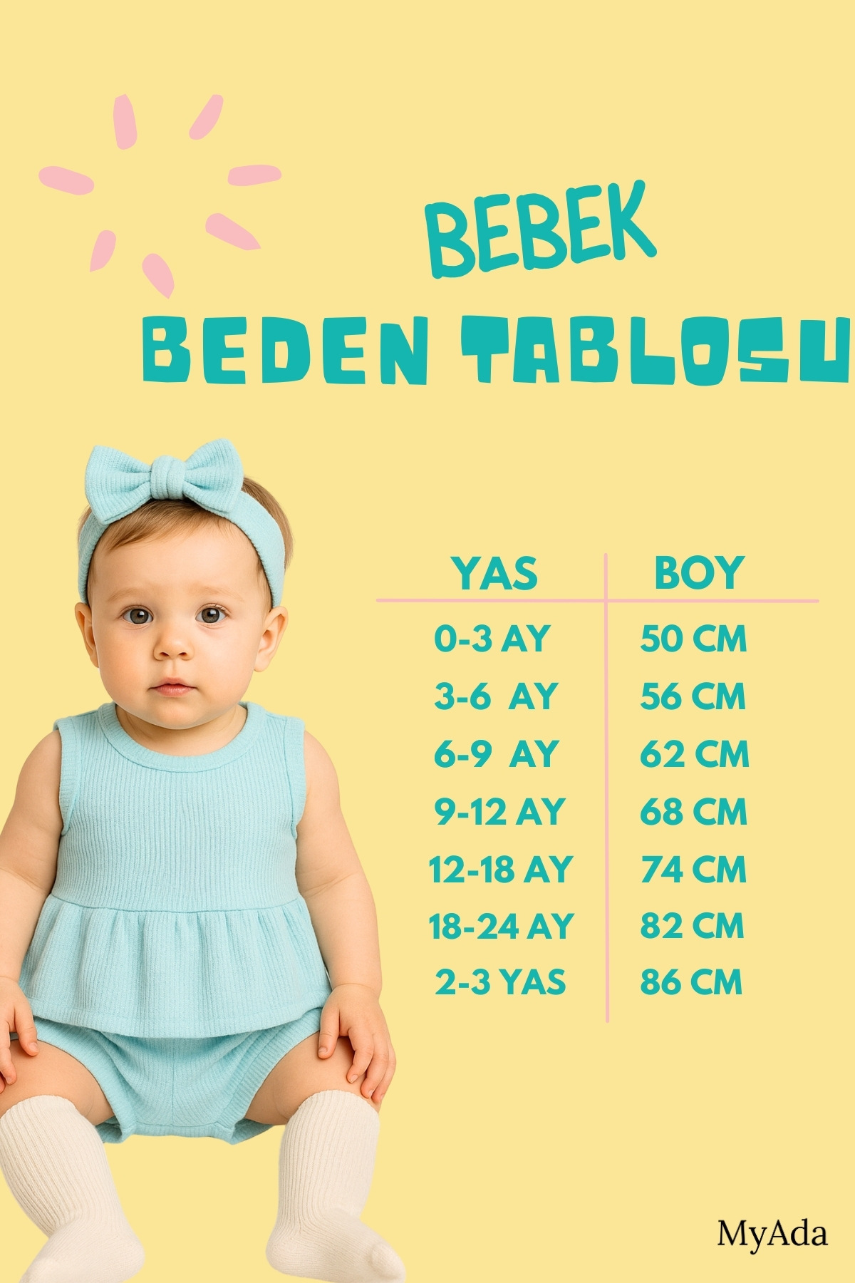 Dantel Yaka Detaylı Fitilli Bandanalı Kız Bebek Takım Dantel Yaka Detaylı Fitilli Bandanalı Kız Bebek Takım ADA0044-1 2-3 Yaş