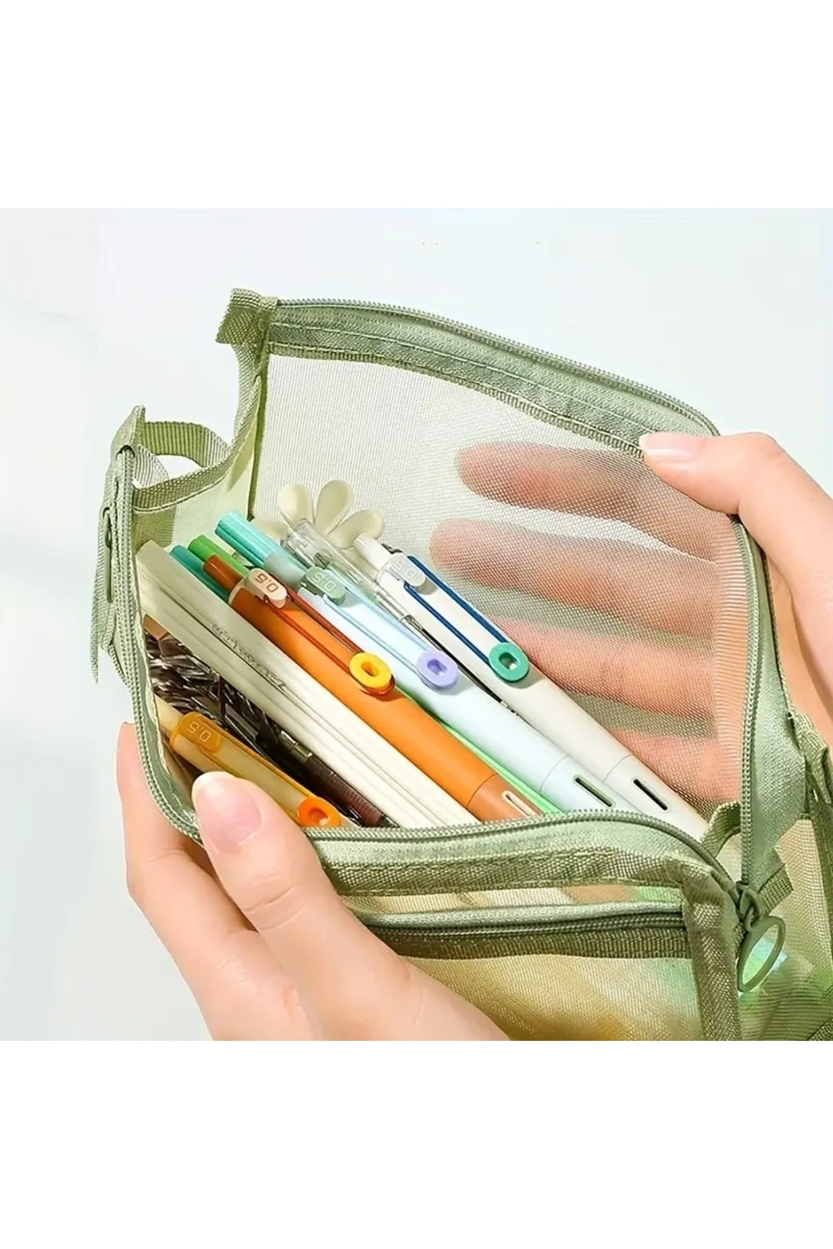 Şeffaf Fileli Çift Katmanlı Kalem Kutu,Ofis Malzeme Organizatörü,Makyaj Çanta,Kalemlik Şeffaf Fileli Çift Katmanlı Kalem Kutu,Ofis Malzeme Organizatörü,Makyaj Çanta,Kalemlik KalemK99 تک سایز
