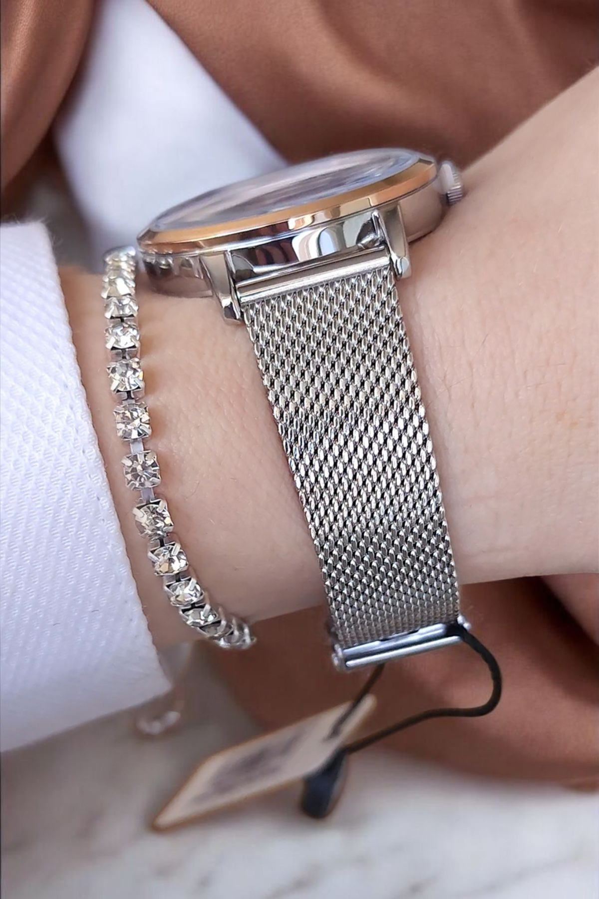Yedek Taba Deri Kayışlı, Metalik Hasır Çelik Bilezik Kadın Kol Saati, Taşlı Bileklik Hediyeli Yedek Taba Deri Kayışlı, Metalik Hasır Çelik Bilezik Kadın Kol Saati, Taşlı Bileklik Hediyeli DK013160HMD تک سایز