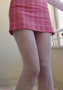 Bowtie Kurdele Desenli Ithal Beyaz Külotlu Çorap Bowtie Kurdele Desenli Ithal Beyaz Külotlu Çorap VR4 L/XL