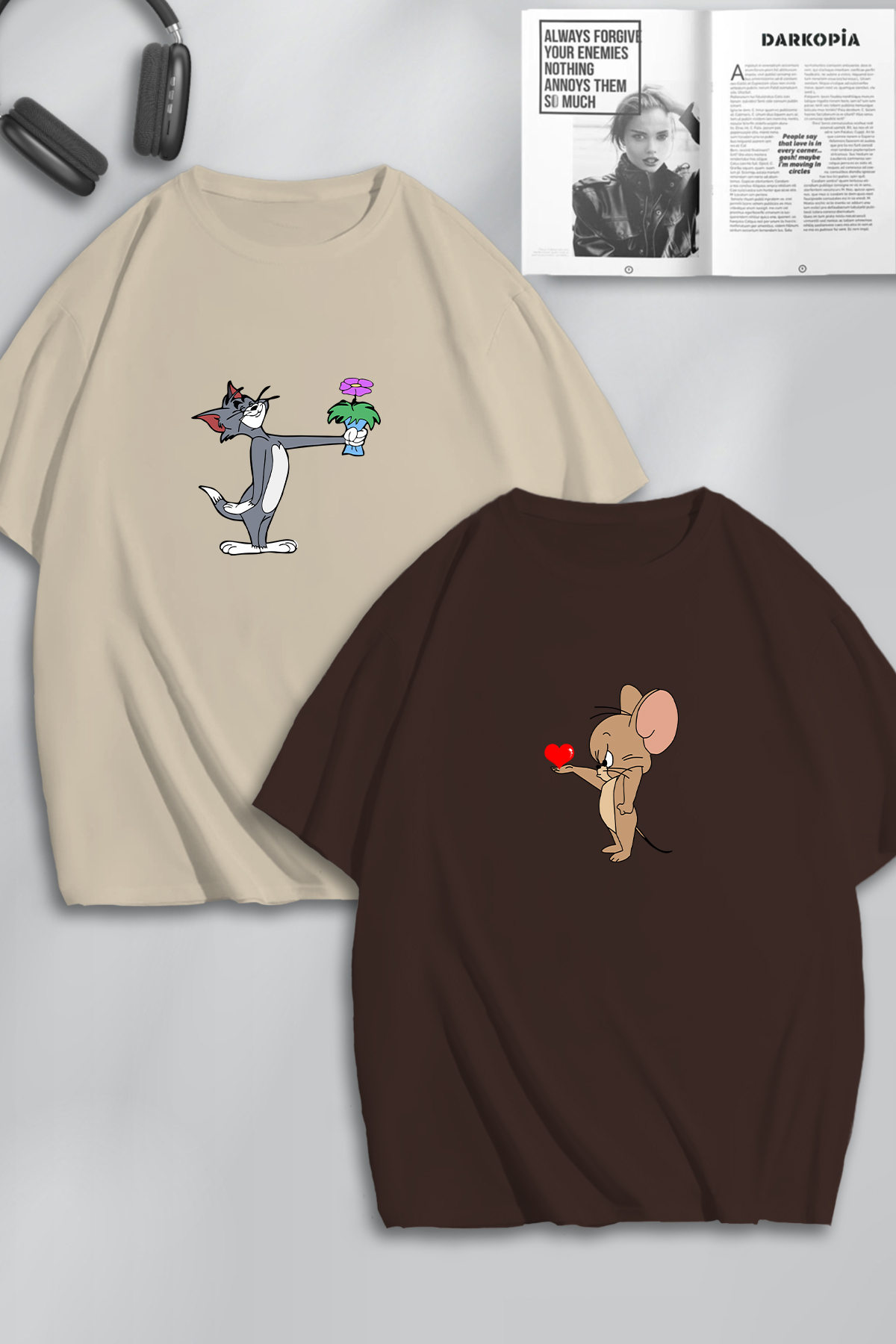 Unisex Kadın Erkek Tom ve Jerry Kalp Baskılı Sevgili Çift Kombini Tasarım Oversize Tshirt 2li Unisex Kadın Erkek Tom ve Jerry Kalp Baskılı Sevgili Çift Kombini Tasarım Oversize Tshirt 2li macklintvjşk M/S
