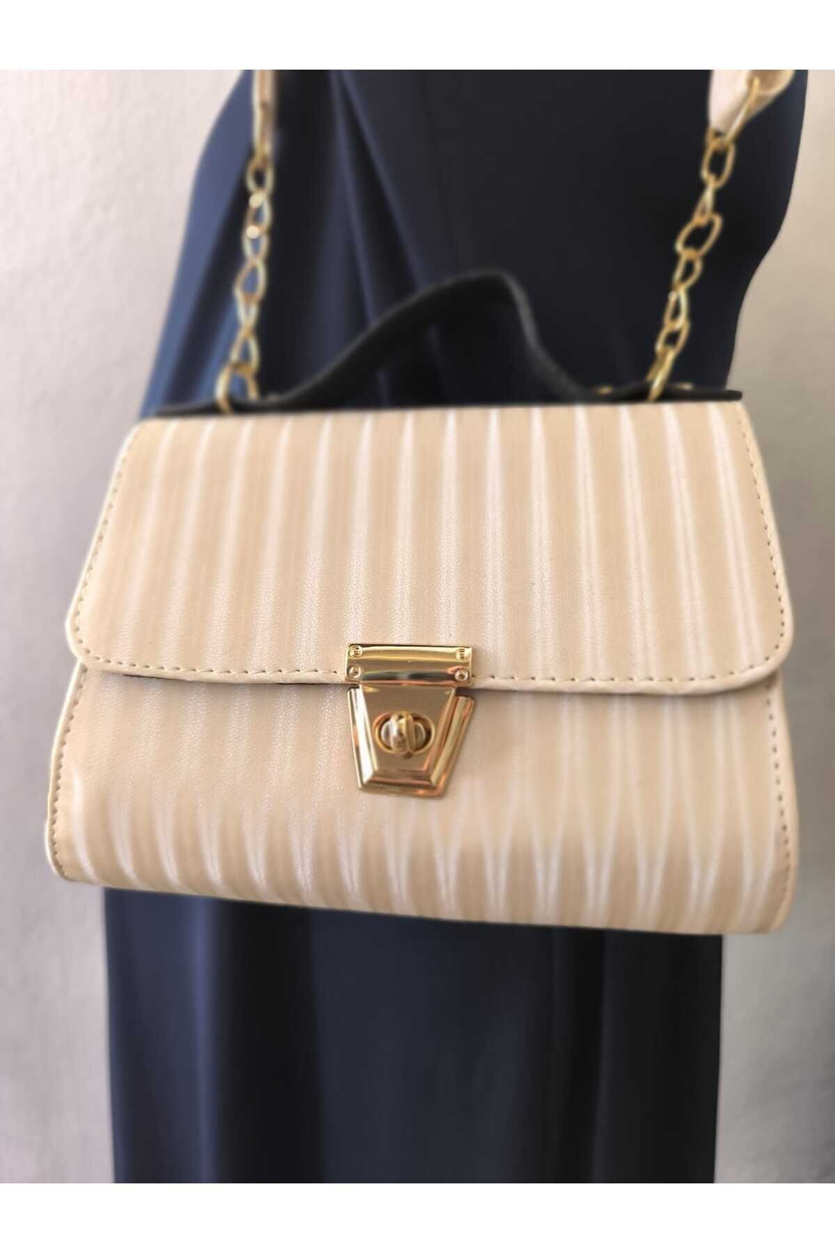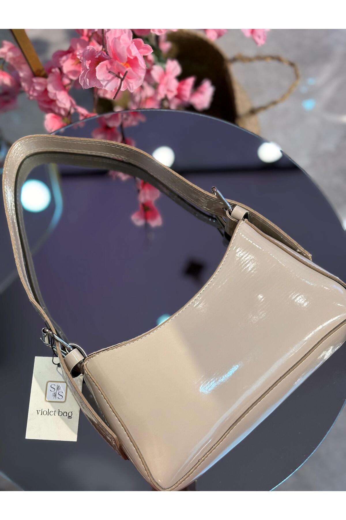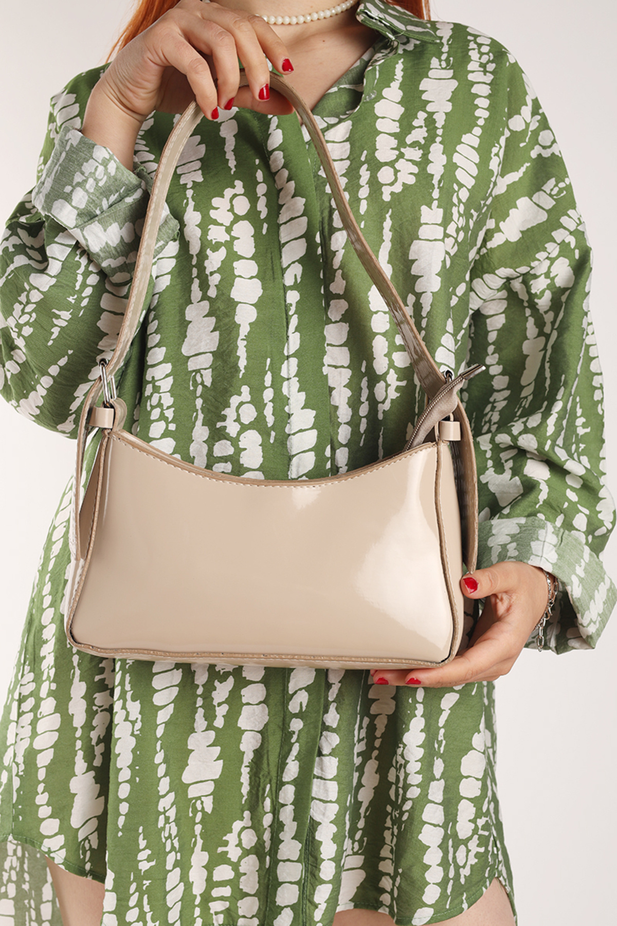 Kadın Şık Parlak Bej Omuz Çantası Kadın Şık Parlak Bej Omuz Çantası KRNVL-V002 تک سایز