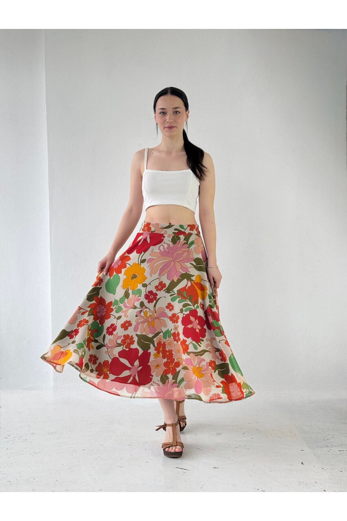 Çiçekli Valerie Şifon Kloş Astarlı Uzun Etek Kadın Krem Çiçekli Valerie Şifon Kloş Astarlı Uzun Etek Kadın Krem RBKETK136 L/XL
