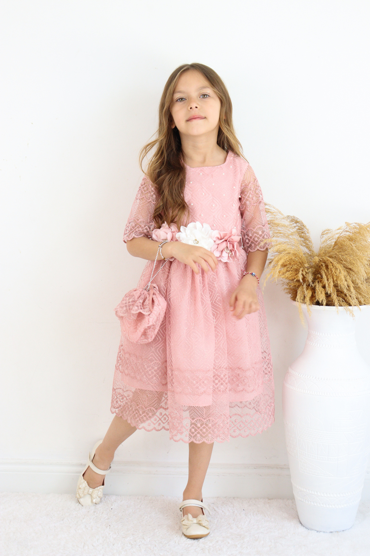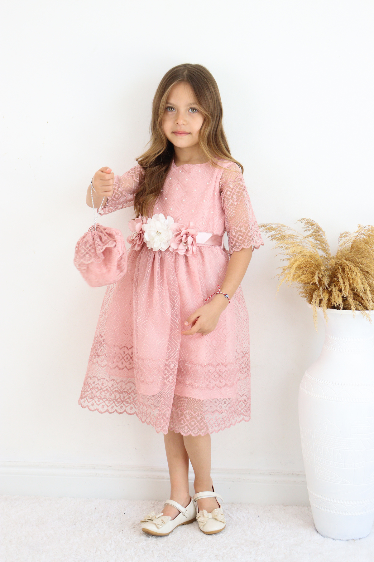 💜 Kız Çocuk Özel Tasarım İncili Dantel Elbise Takımı (Çanta + Kemer Dahil) 💜 💜 Kız Çocuk Özel Tasarım İncili Dantel Elbise Takımı (Çanta + Kemer Dahil) 💜 NKSS25İDE 12-13 Yaş