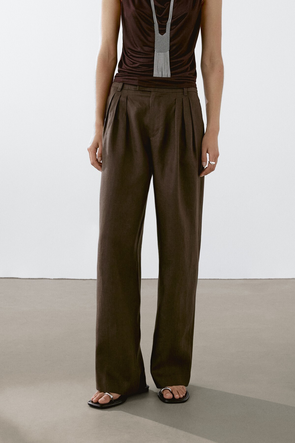 %100 keten üçlü pensli pantolon %100 keten üçlü pensli pantolon 05034834 44