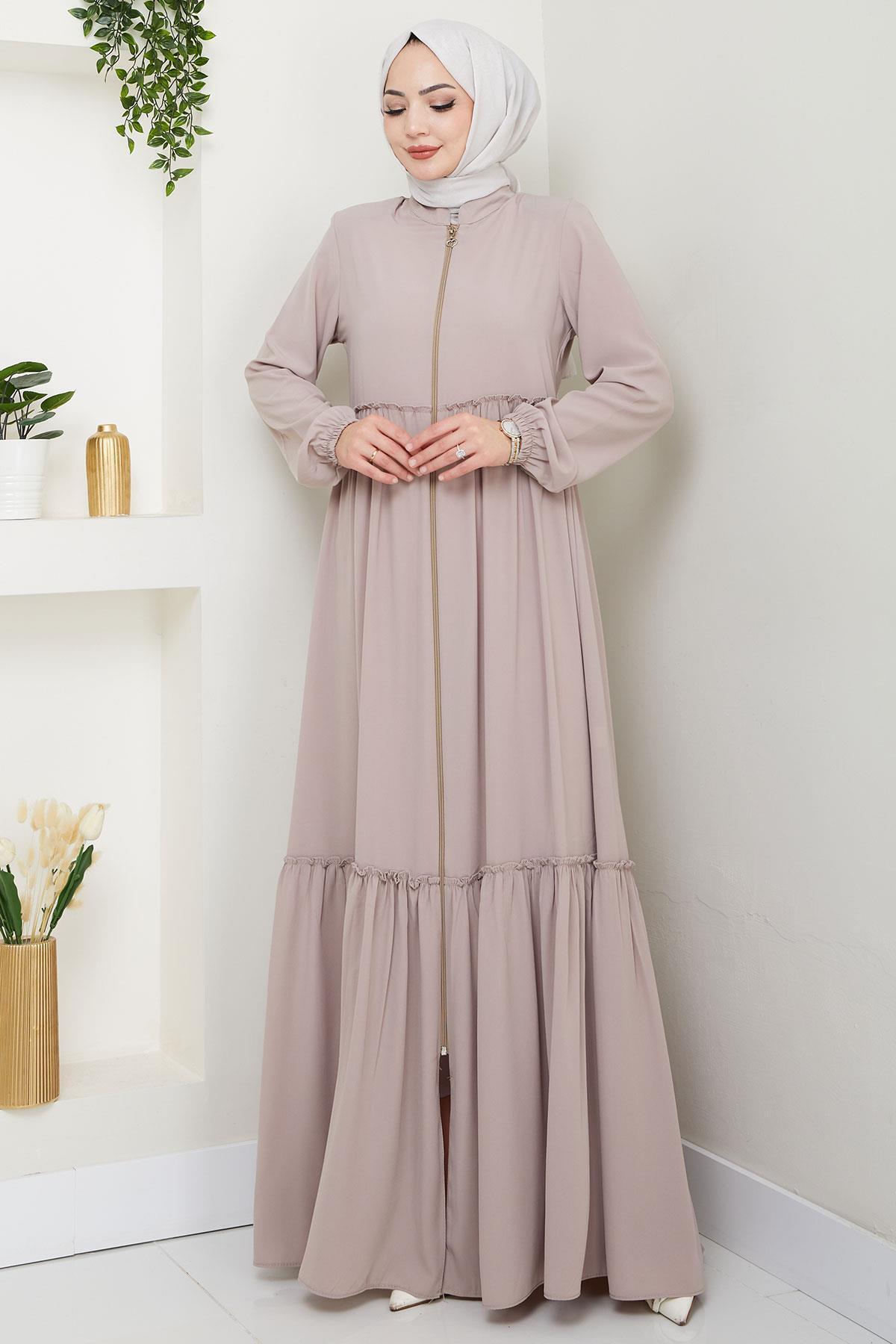 Büzgü Detaylı Ferace Bej HM2034 Büzgü Detaylı Ferace Bej HM2034 52