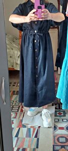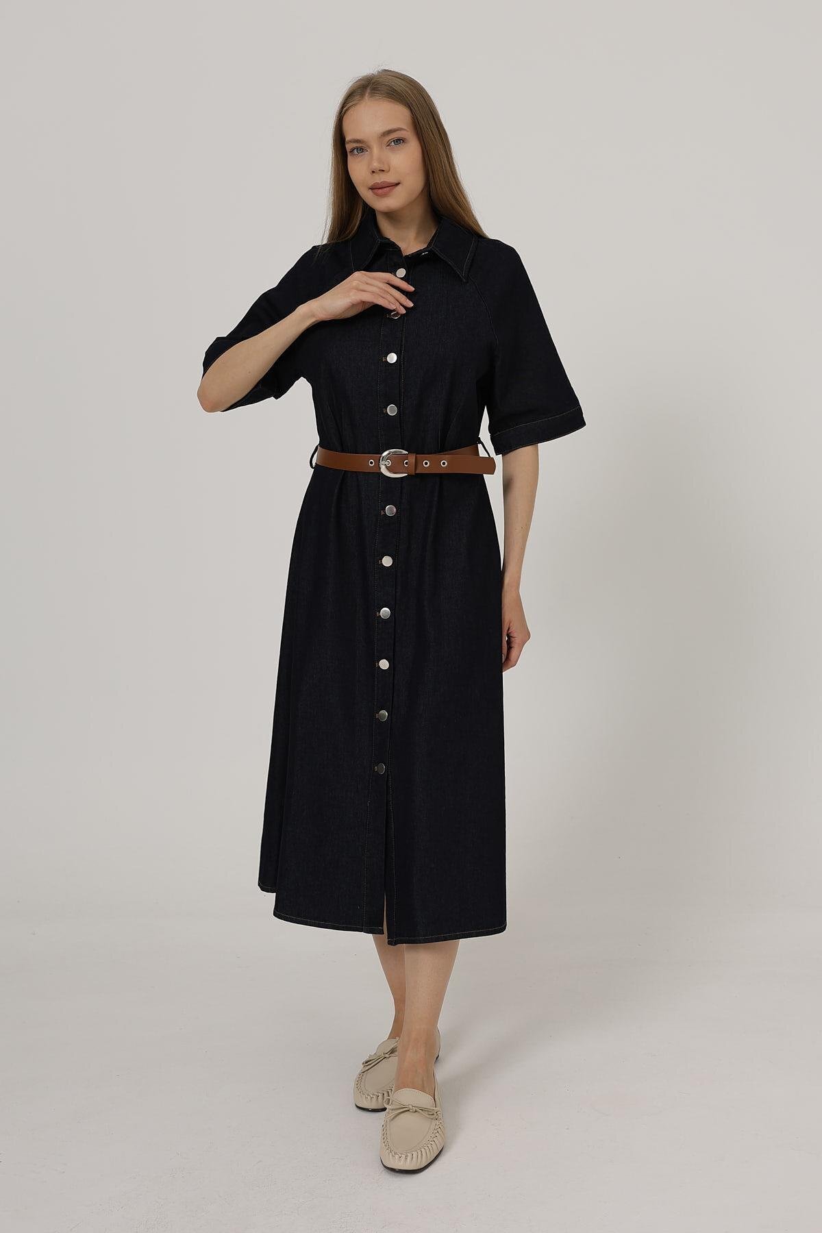4686 Kadın Midi Boy Belden Bağlamalı Denim Elbise Lacivert 4686 Kadın Midi Boy Belden Bağlamalı Denim Elbise Lacivert Y25ELB4686 L