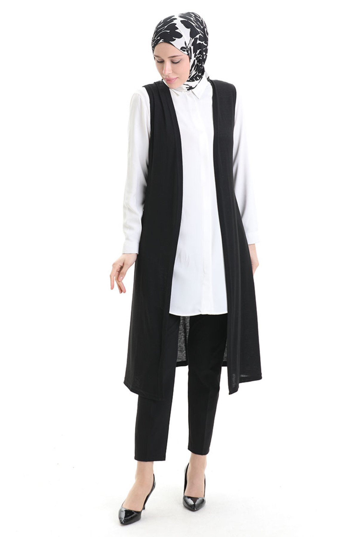 Viskon Penye Uzun Salaş Yelek 8744-01 Siyah Viskon Penye Uzun Salaş Yelek 8744-01 Siyah RSPR8744-01 50-52