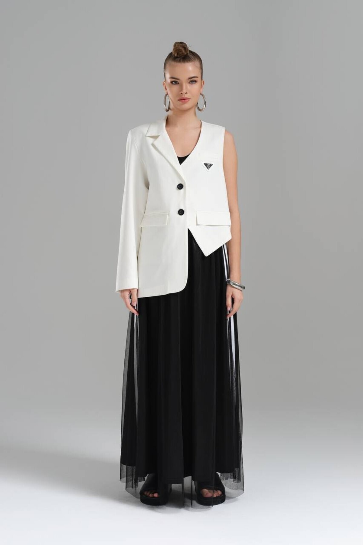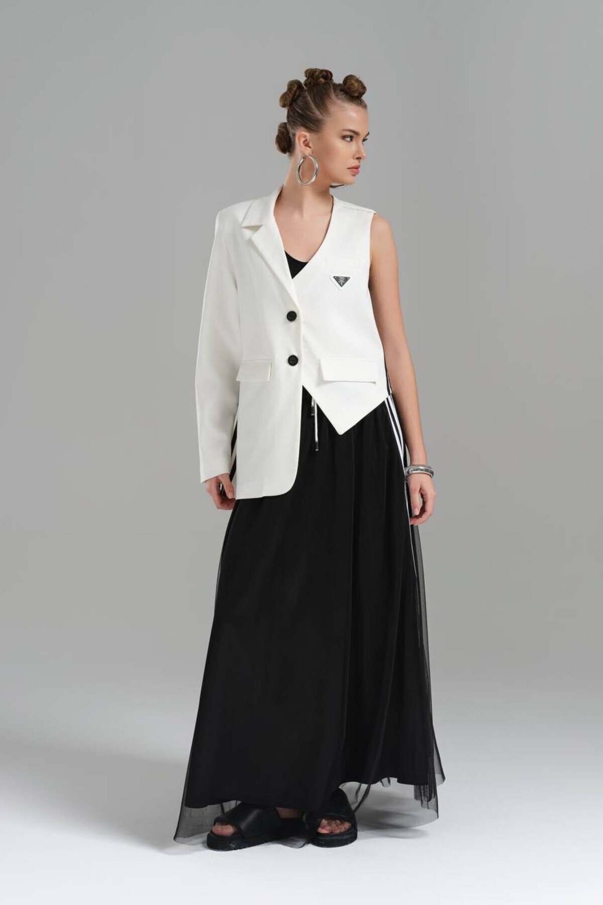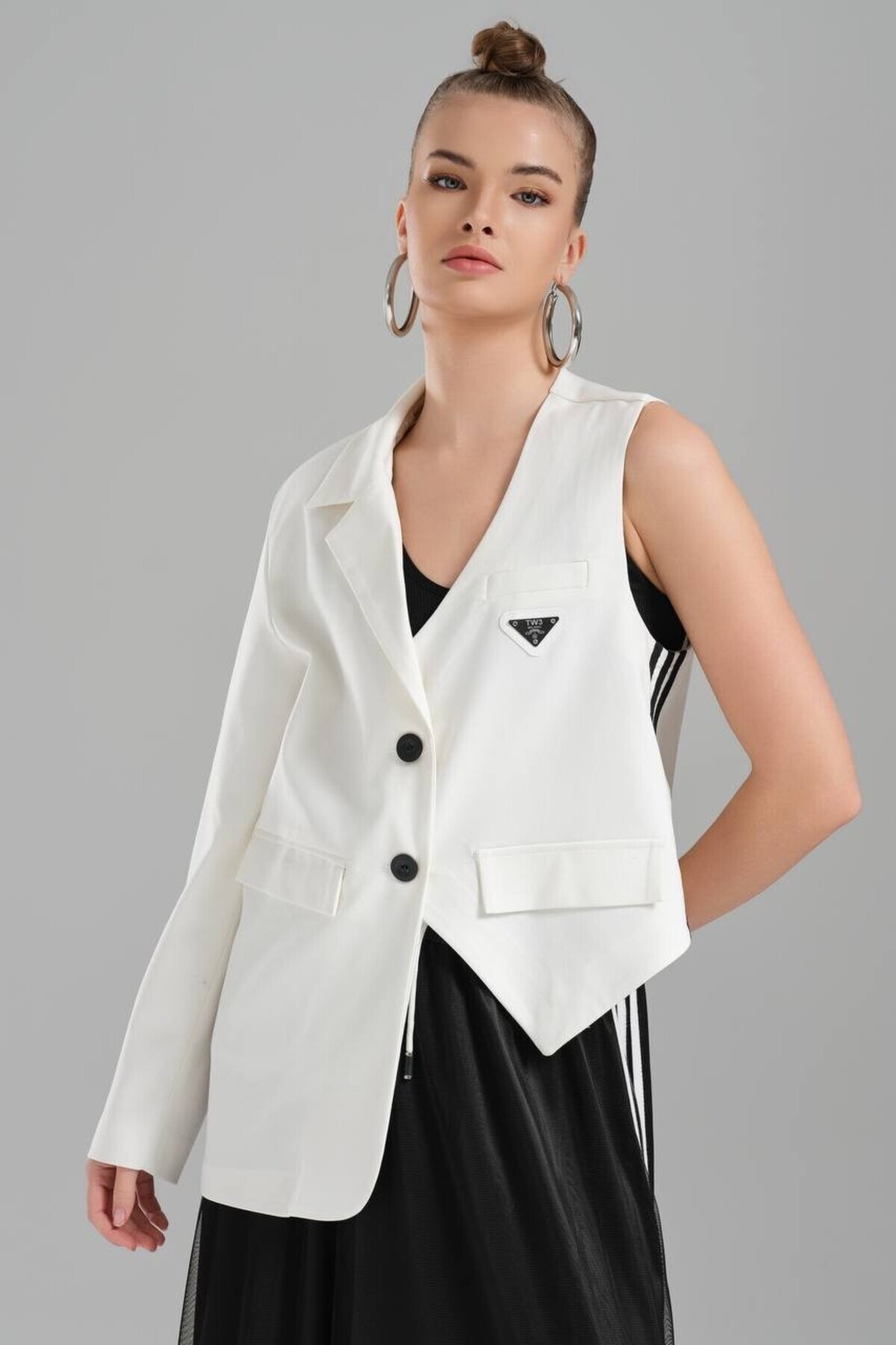 Kadın Şerit Detaylı Özel Tasarım Blazer Yelek Ceket Kadın Şerit Detaylı Özel Tasarım Blazer Yelek Ceket TW3-1249 L