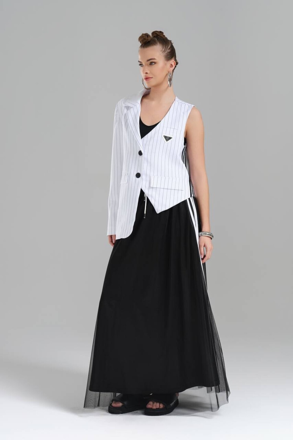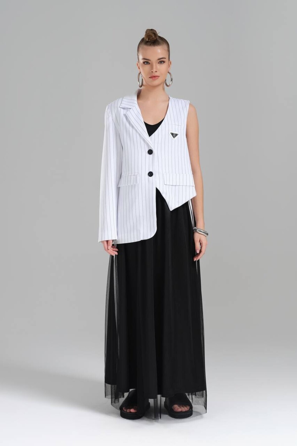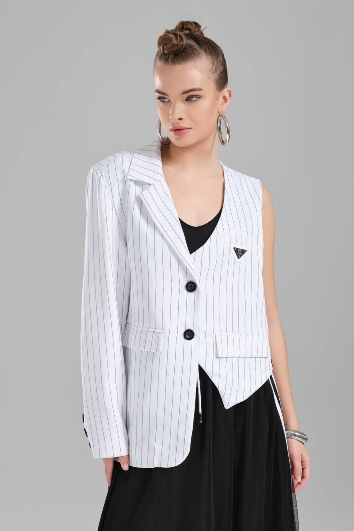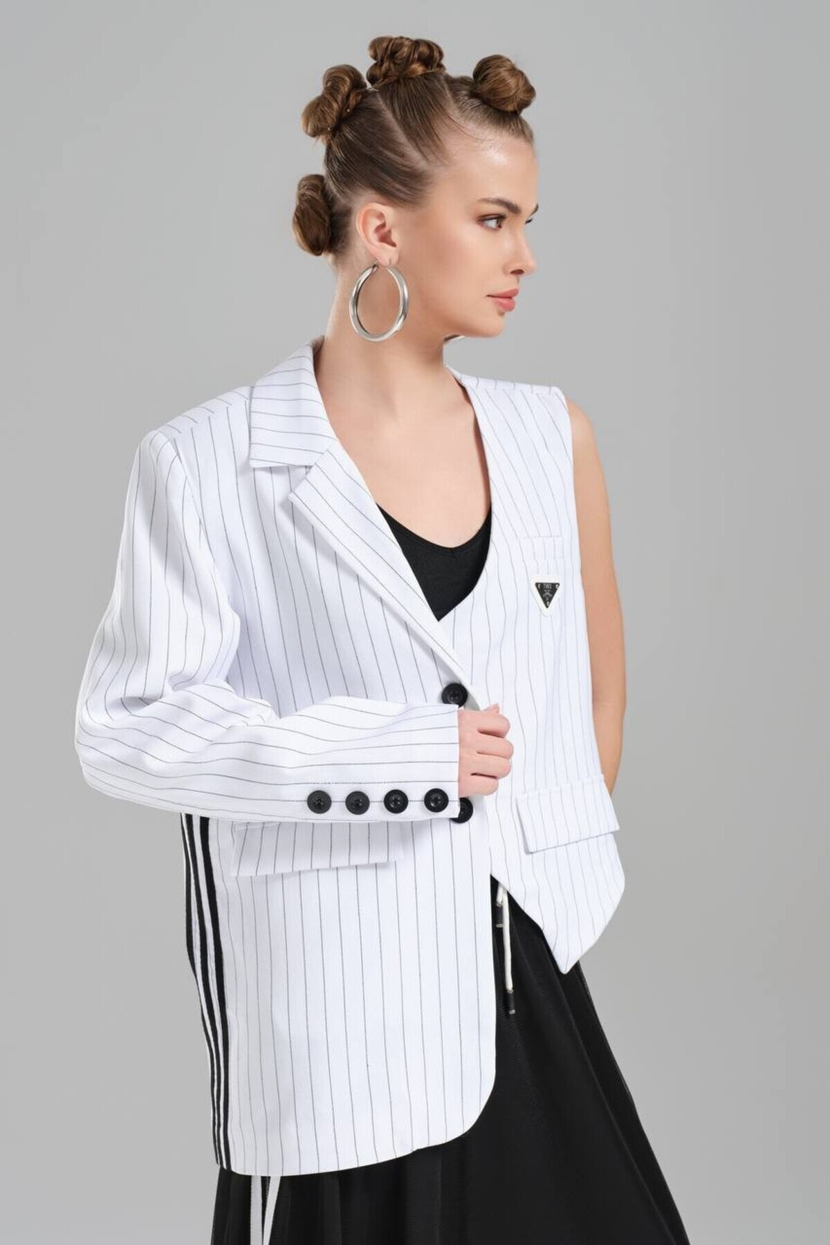 Kadın Şerit Detaylı Özel Tasarım Blazer Yelek Ceket Kadın Şerit Detaylı Özel Tasarım Blazer Yelek Ceket TW3-1249 L