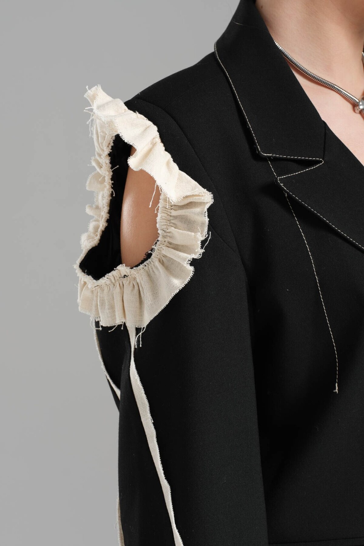 Kadın Tek Omuzu Açık Tasarım Blazer Ceket Kadın Tek Omuzu Açık Tasarım Blazer Ceket TW3-1254 L