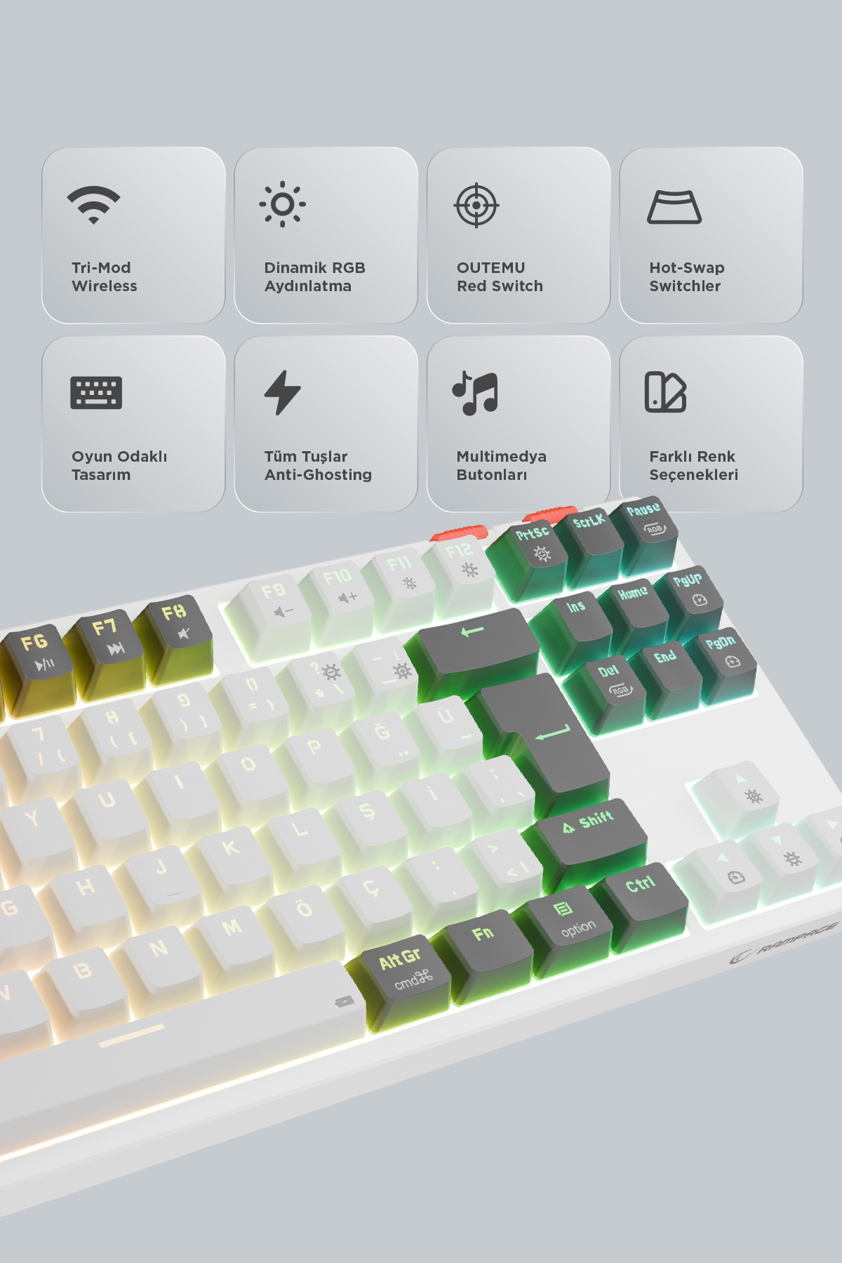 Yoru Tkl Pro Outemu Red Swich Mekanik Kablosuz Oyuncu Klavyesi-beyaz/gri Yoru Tkl Pro Outemu Red Swich Mekanik Kablosuz Oyuncu Klavyesi-beyaz/gri beyazgri تک سایز