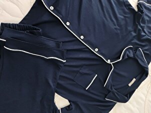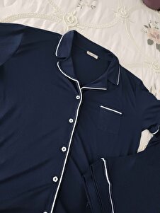 Kadın Vanessa Viskon Ön Düğmeli Kısa Kol Biyeli Lacivert Alt Üst Pijama Takımı Kadın Vanessa Viskon Ön Düğmeli Kısa Kol Biyeli Lacivert Alt Üst Pijama Takımı 1472 4XL
