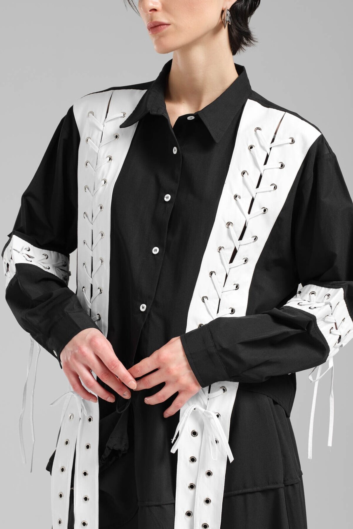 Kadın Bağcık Detaylı Özel Tasarım Gömlek Kadın Bağcık Detaylı Özel Tasarım Gömlek TW3-1123 L