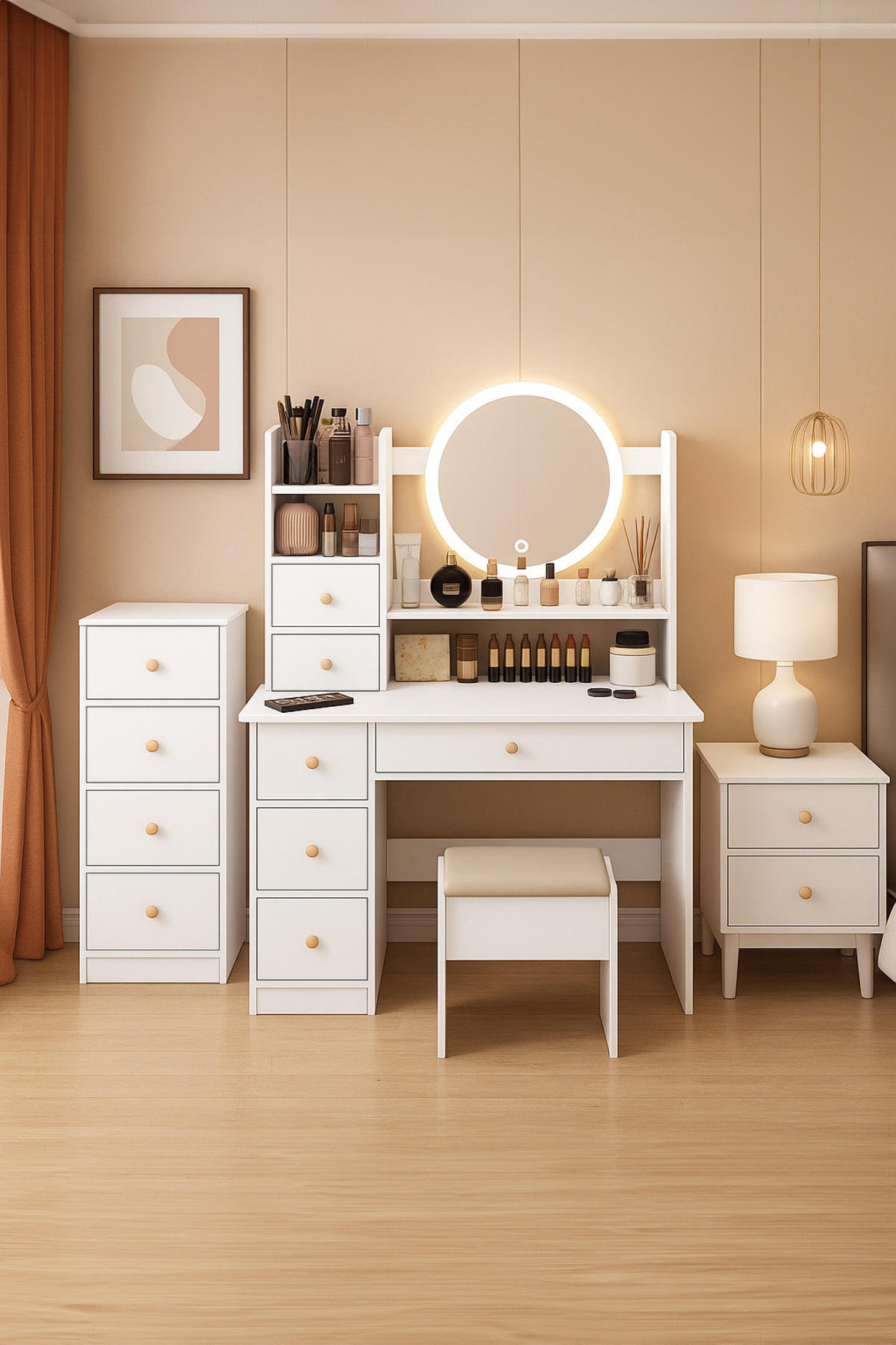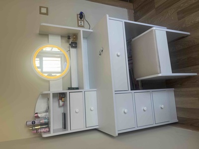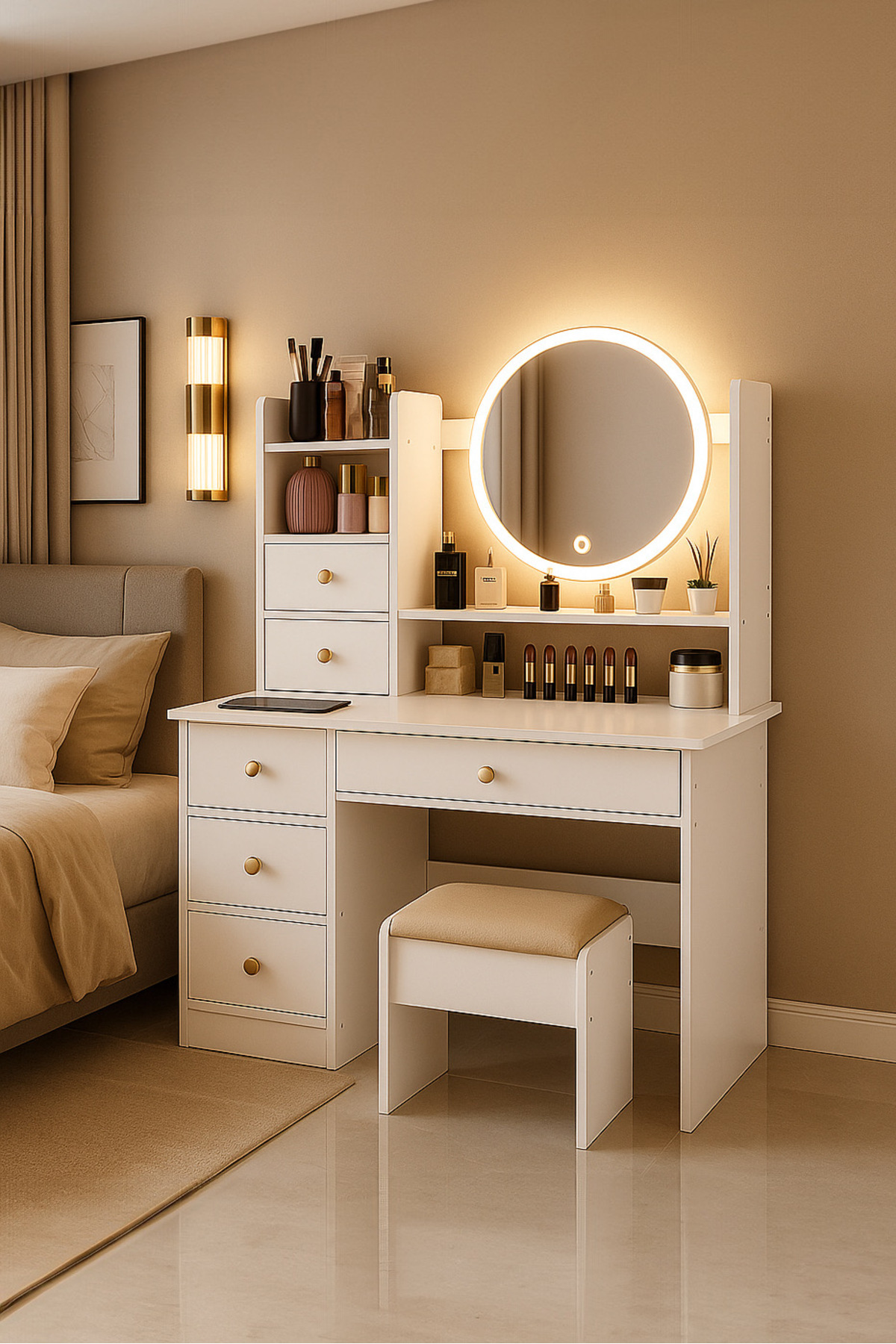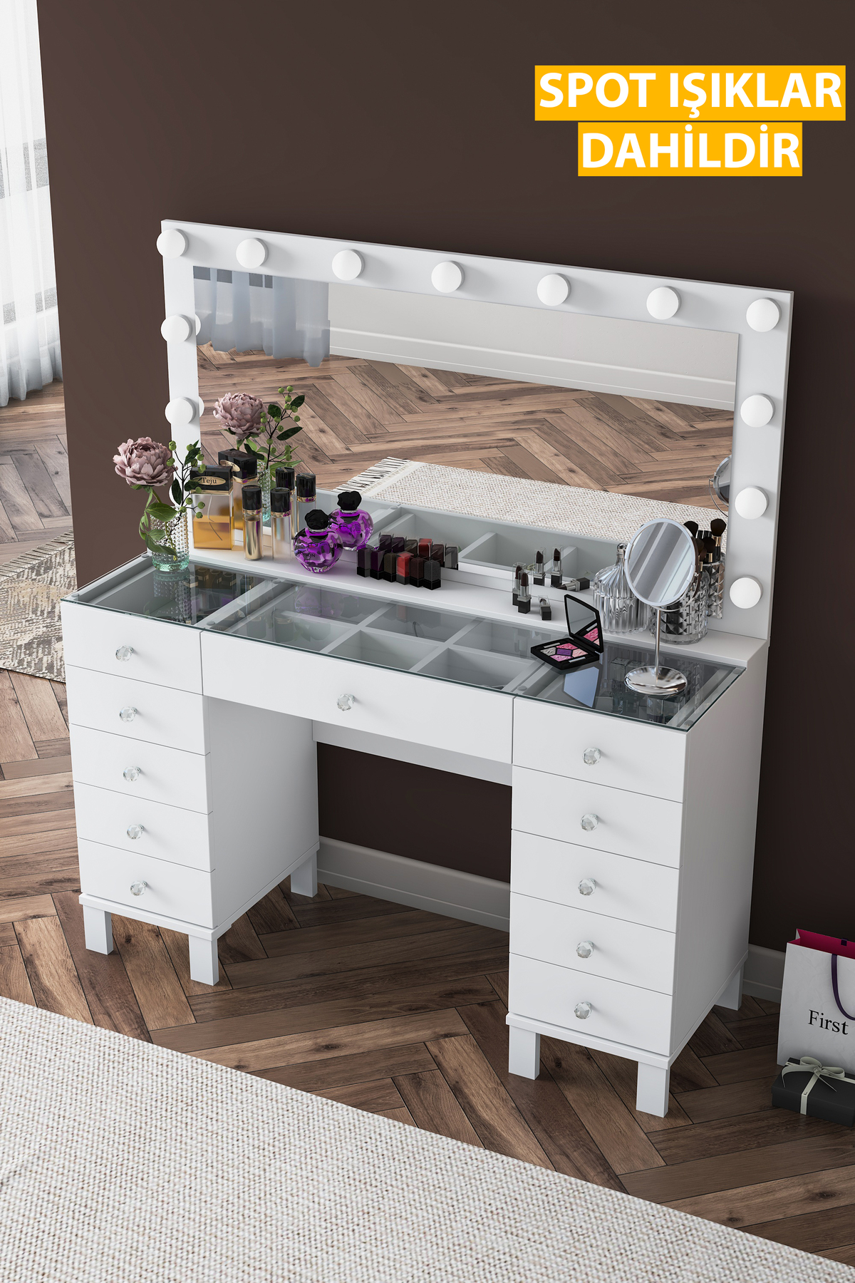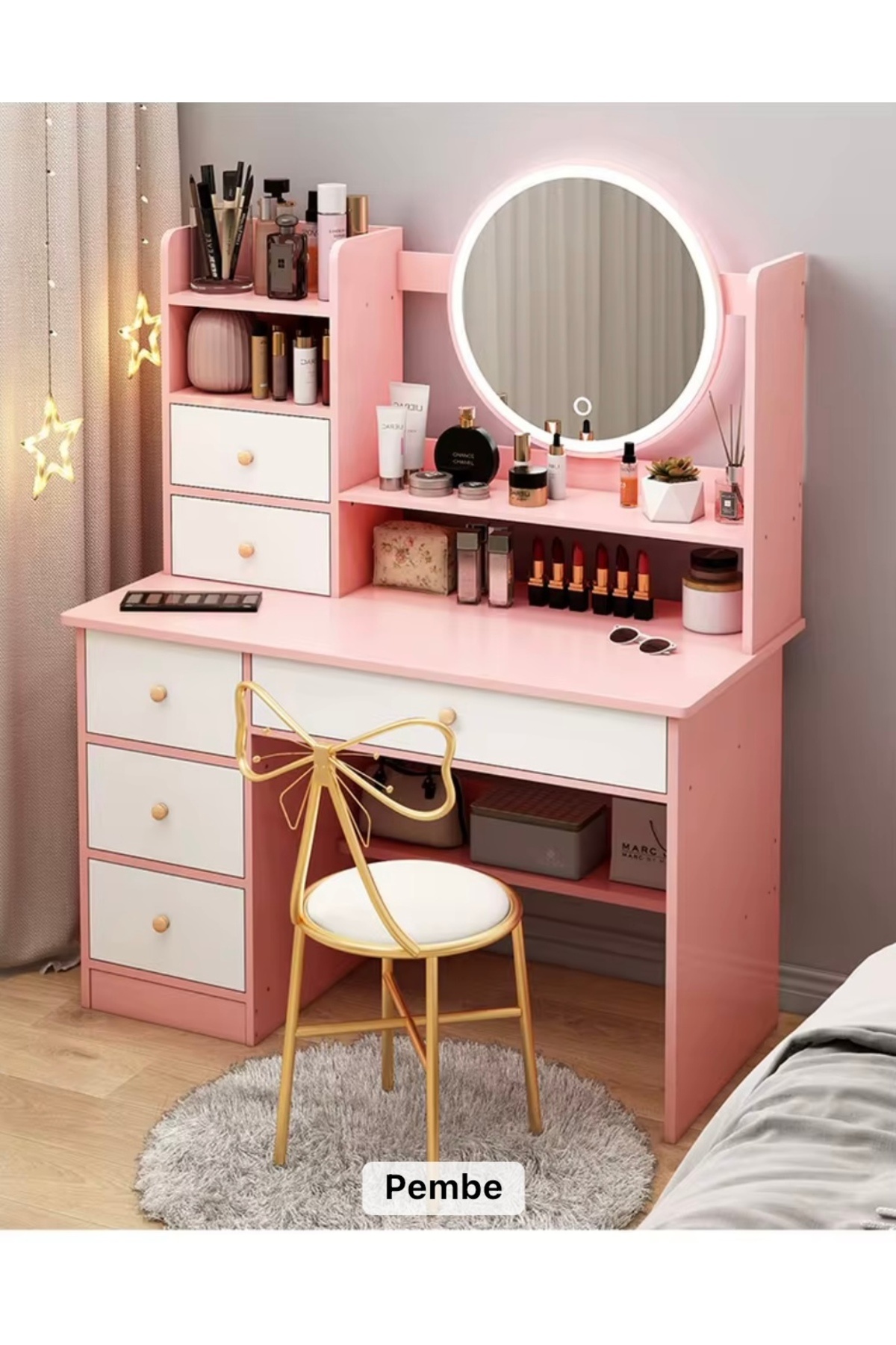 1.sınıf Premium Kalite %100 Mdf Led Işıklı Aynalı Modern Makyaj Masası (MM-1002B) 1.sınıf Premium Kalite %100 Mdf Led Işıklı Aynalı Modern Makyaj Masası (MM-1002B) MODEL2 تک سایز
