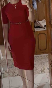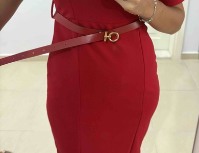 Kırmızı Bisiklet Yaka Kemer Detaylı Kısa Kol Krep Kumaş Abiye Elbise Kırmızı Bisiklet Yaka Kemer Detaylı Kısa Kol Krep Kumaş Abiye Elbise DFX391530 XL