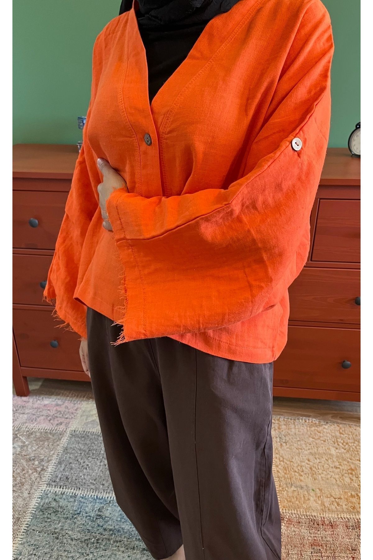 JD6281 FARM PRM TOP Turuncu Loose Fit Desenli Kadın Gömlek JD6281 FARM PRM TOP Turuncu Loose Fit Desenli Kadın Gömlek JD6281-K L