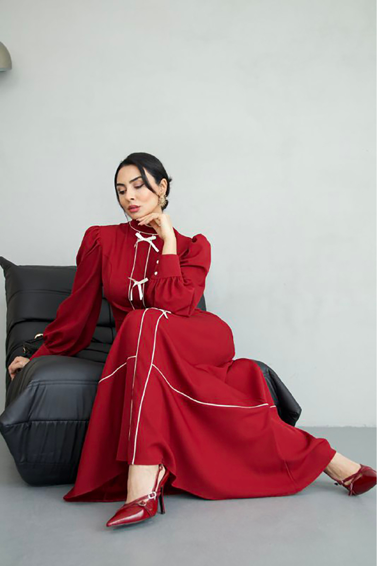 kadın atlas kumaş fiyonk detaylı uzun elbise NBMS2515 kadın atlas kumaş fiyonk detaylı uzun elbise NBMS2515 42