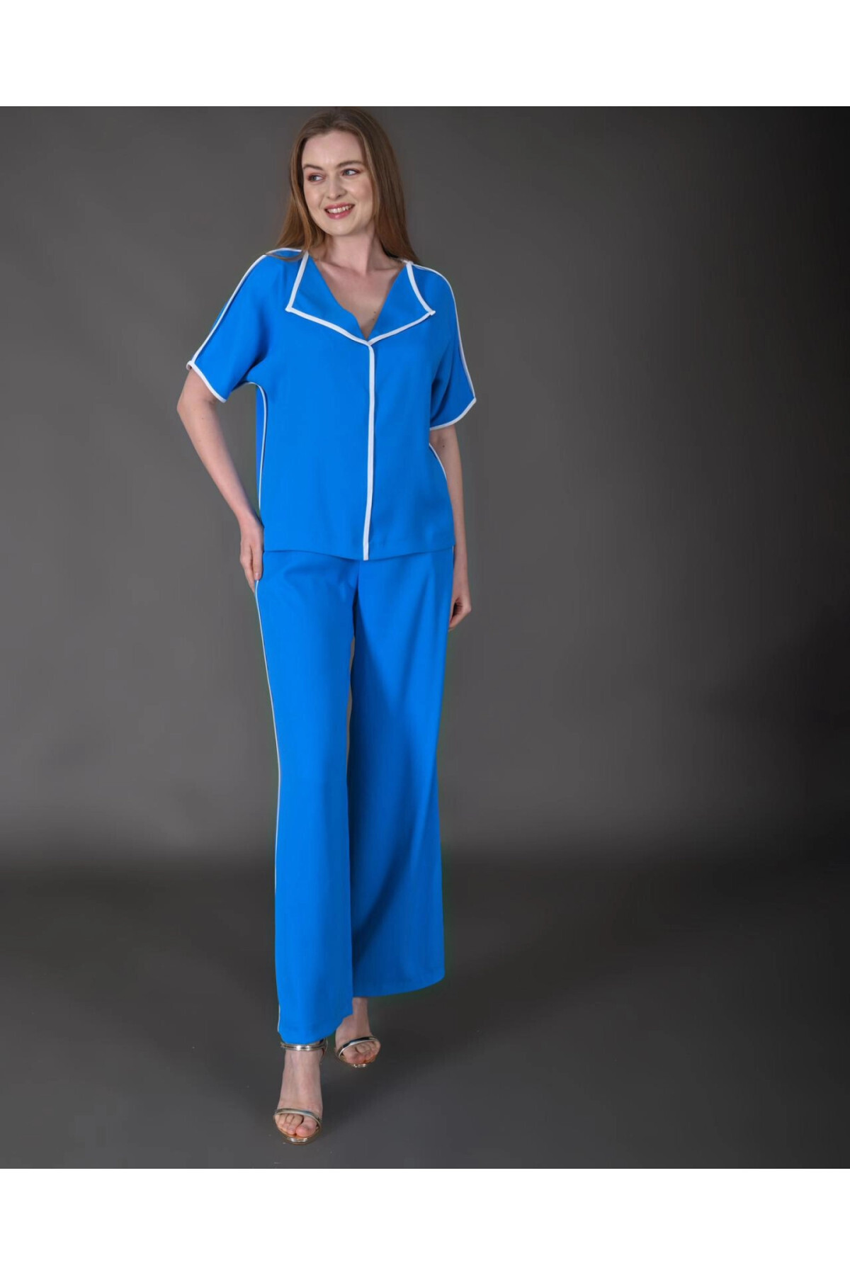 Kadın Kolları Kot Önü Nakışlı İnci Detaylı Keten Gömlek Ve Pantolon Alt Üst Takım Kadın Kolları Kot Önü Nakışlı İnci Detaylı Keten Gömlek Ve Pantolon Alt Üst Takım 447 XL