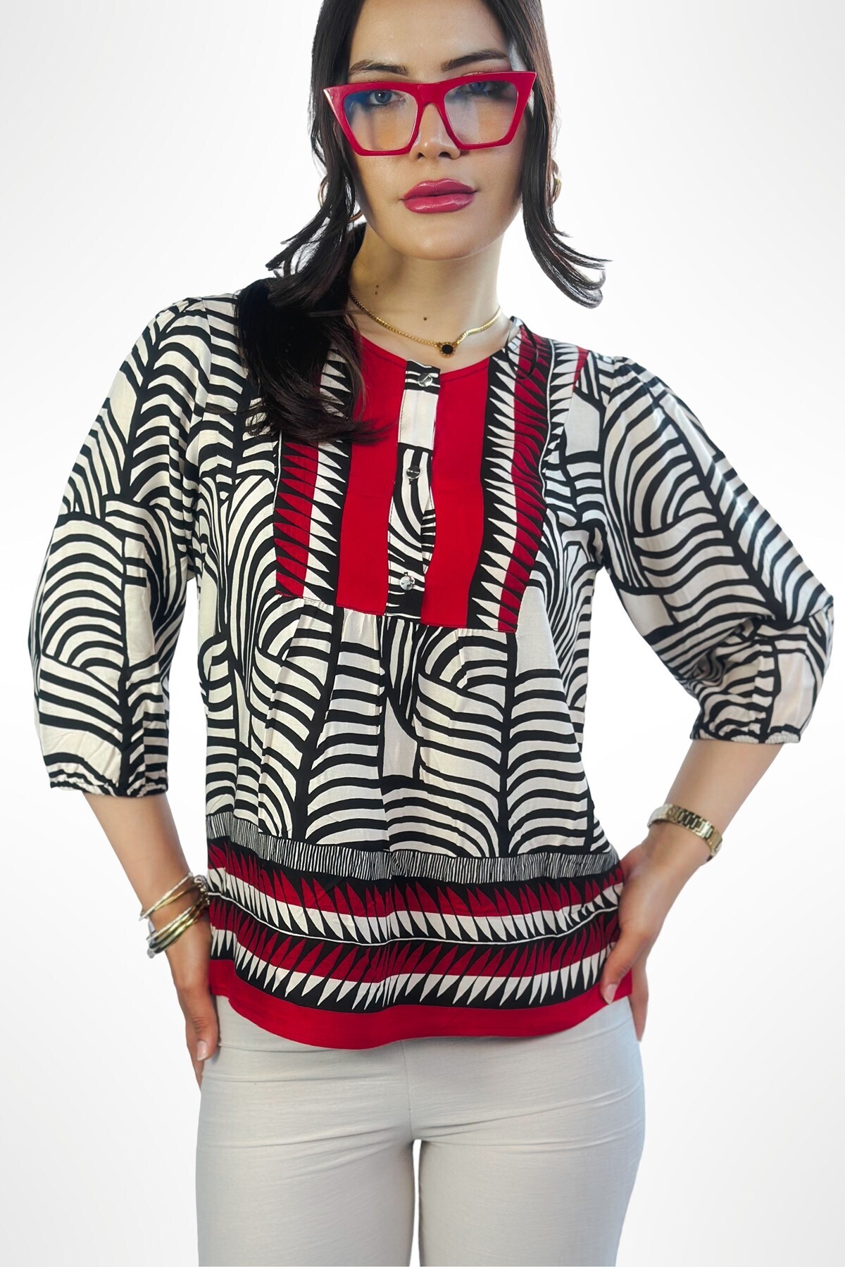Kadın Kırmızı Desenli Truvakar Kol Şık Viskon Bluz Günlük ve Ofis Kombinlerine Uygun Kadın Kırmızı Desenli Truvakar Kol Şık Viskon Bluz Günlük ve Ofis Kombinlerine Uygun PRA-12694144-578403 48