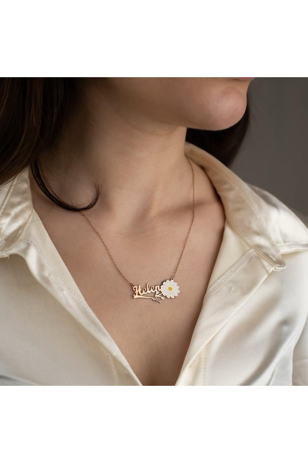 925 Ayar Gümüş 24 Ayar Altın Kaplama İsimli Papatya Figürlü Kolye 925 Ayar Gümüş 24 Ayar Altın Kaplama İsimli Papatya Figürlü Kolye GM0000625 65 cm