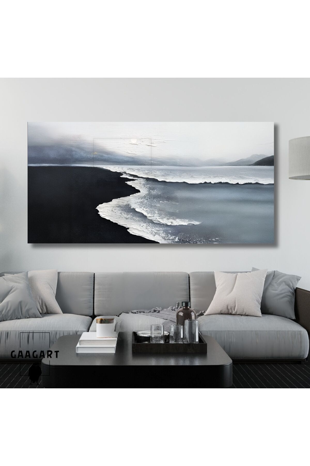 Tekli Yatay Kanvas Duvar Tablosu Soyut Siyah Gri Beyaz Tekli Yatay Kanvas Duvar Tablosu Soyut Siyah Gri Beyaz GAAGART-YK-0322 150 x 100