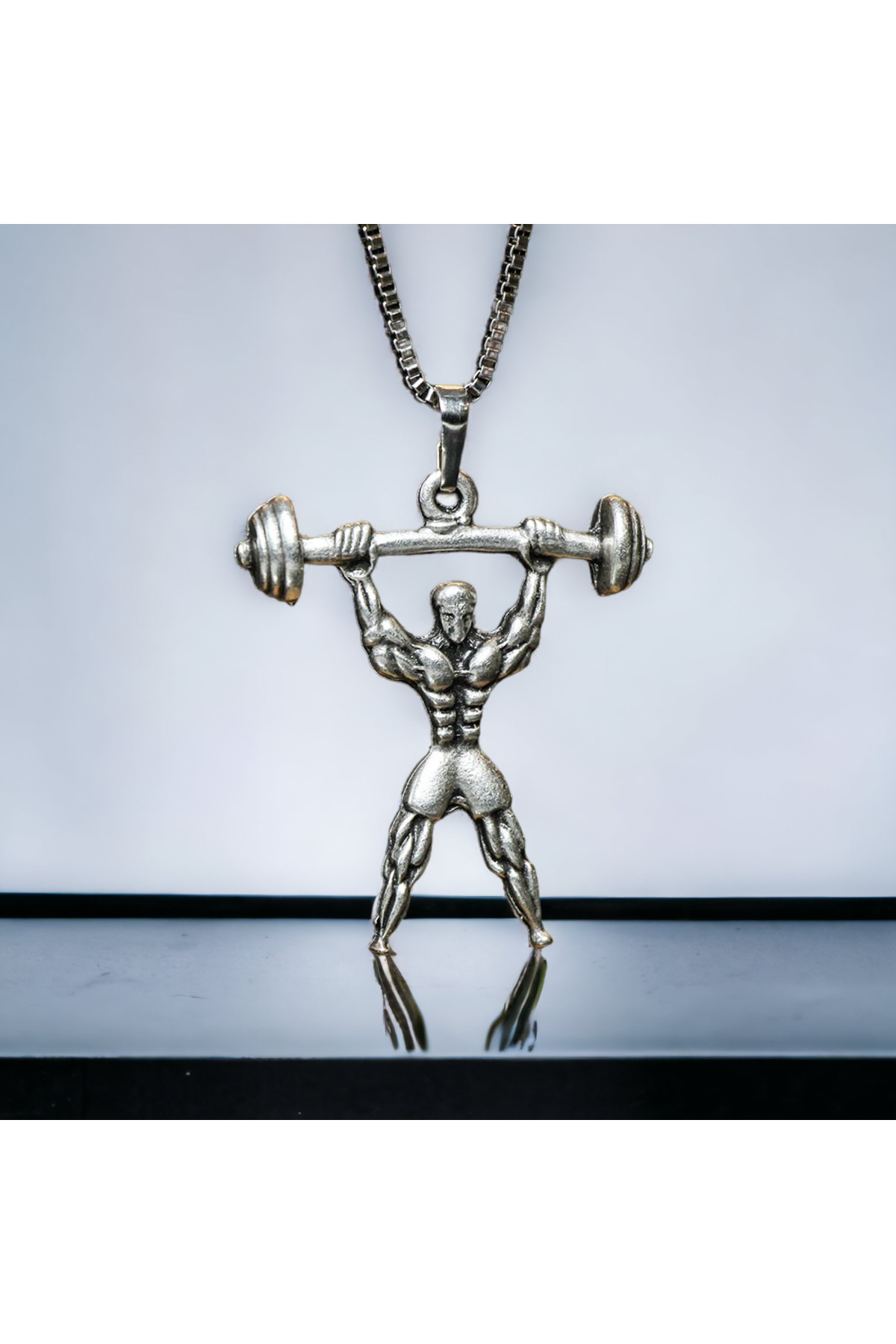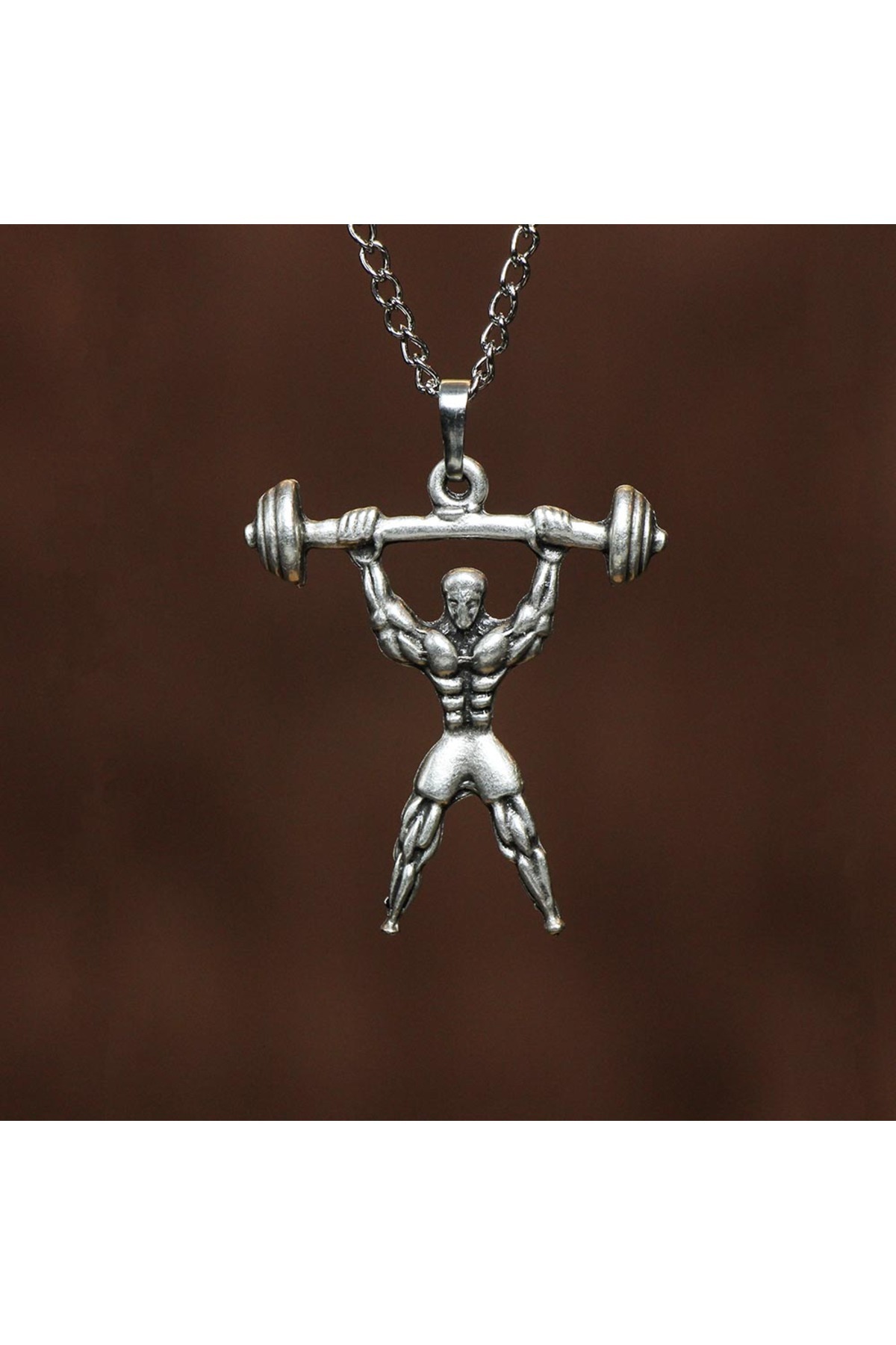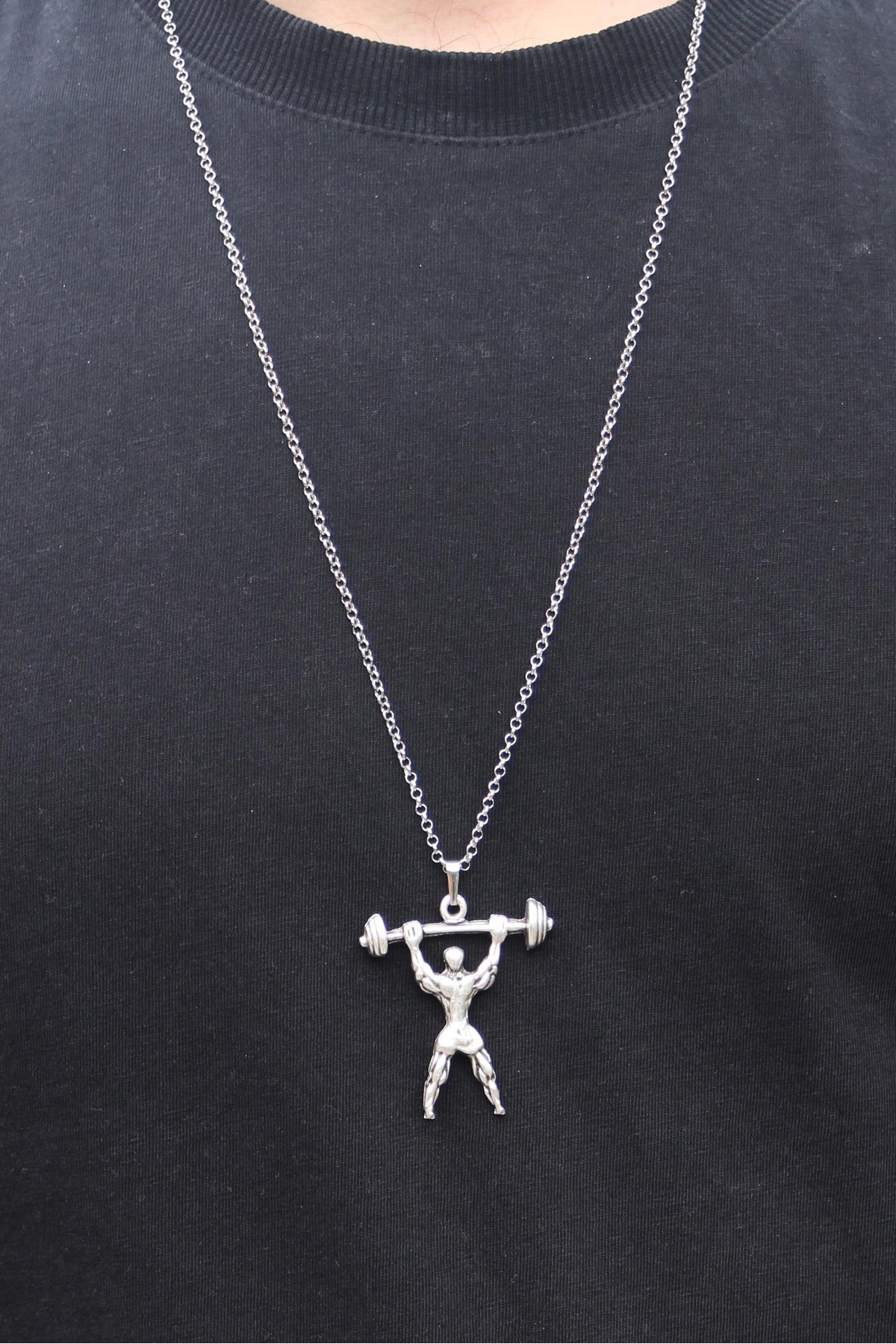 Gümüş Kaplama Tasarım Halter Sporcu Çelik Kolye Gümüş Kaplama Tasarım Halter Sporcu Çelik Kolye AGKS7 75 cm