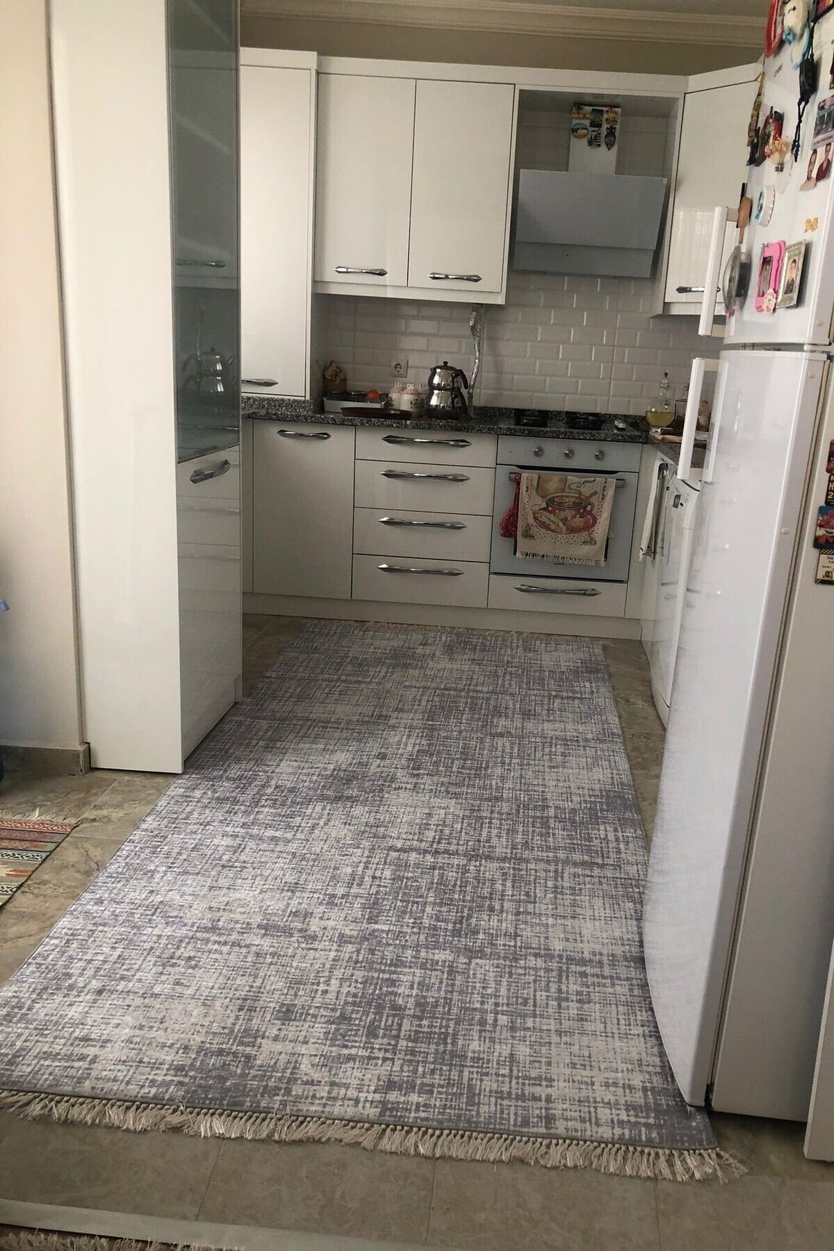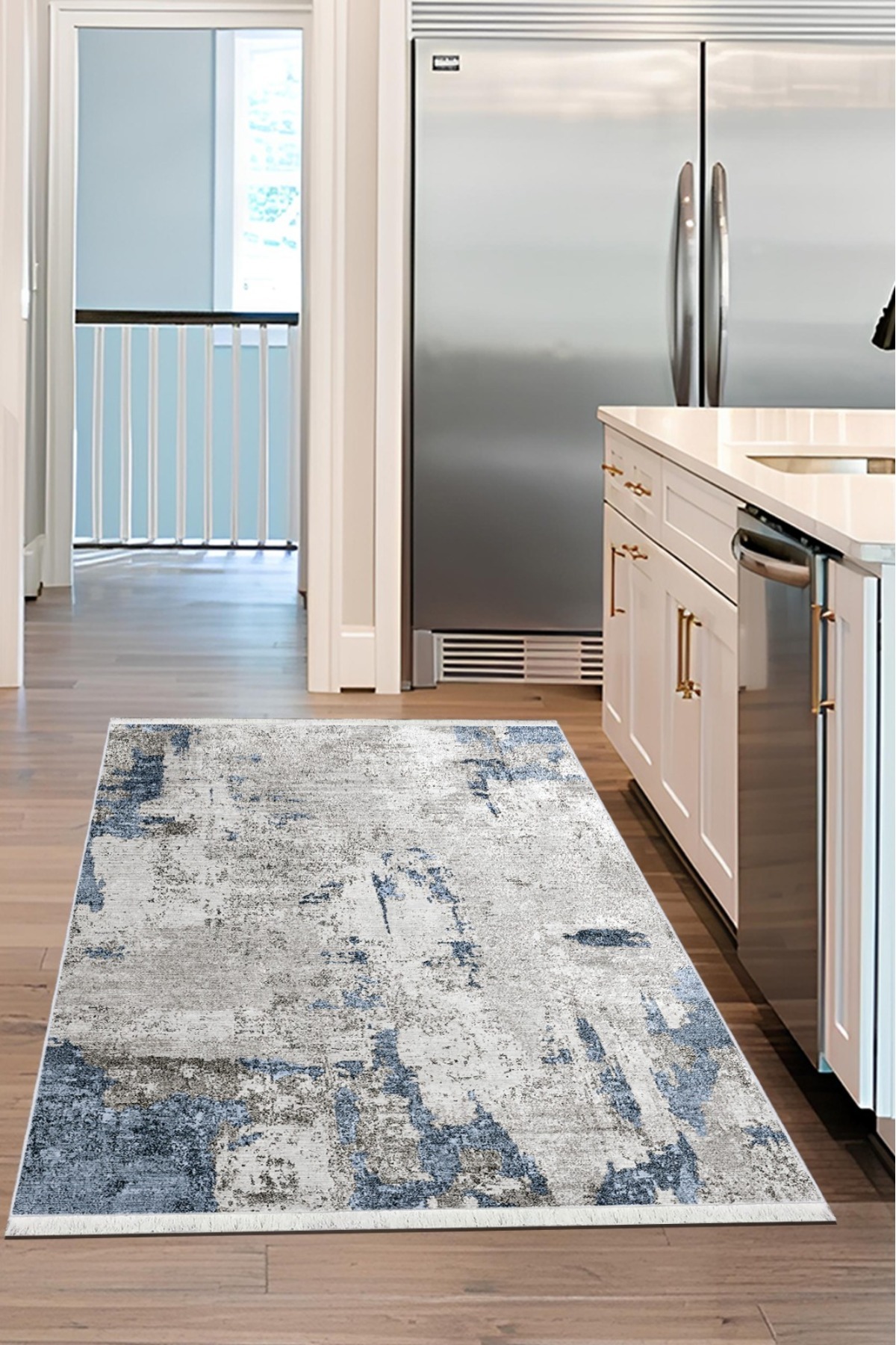 Lacivert Mutfak Halısı Makinede Yıkanabilir Halı Kaymaz Taban Halı Lacivert Mutfak Halısı Makinede Yıkanabilir Halı Kaymaz Taban Halı 1234V 100 x 430