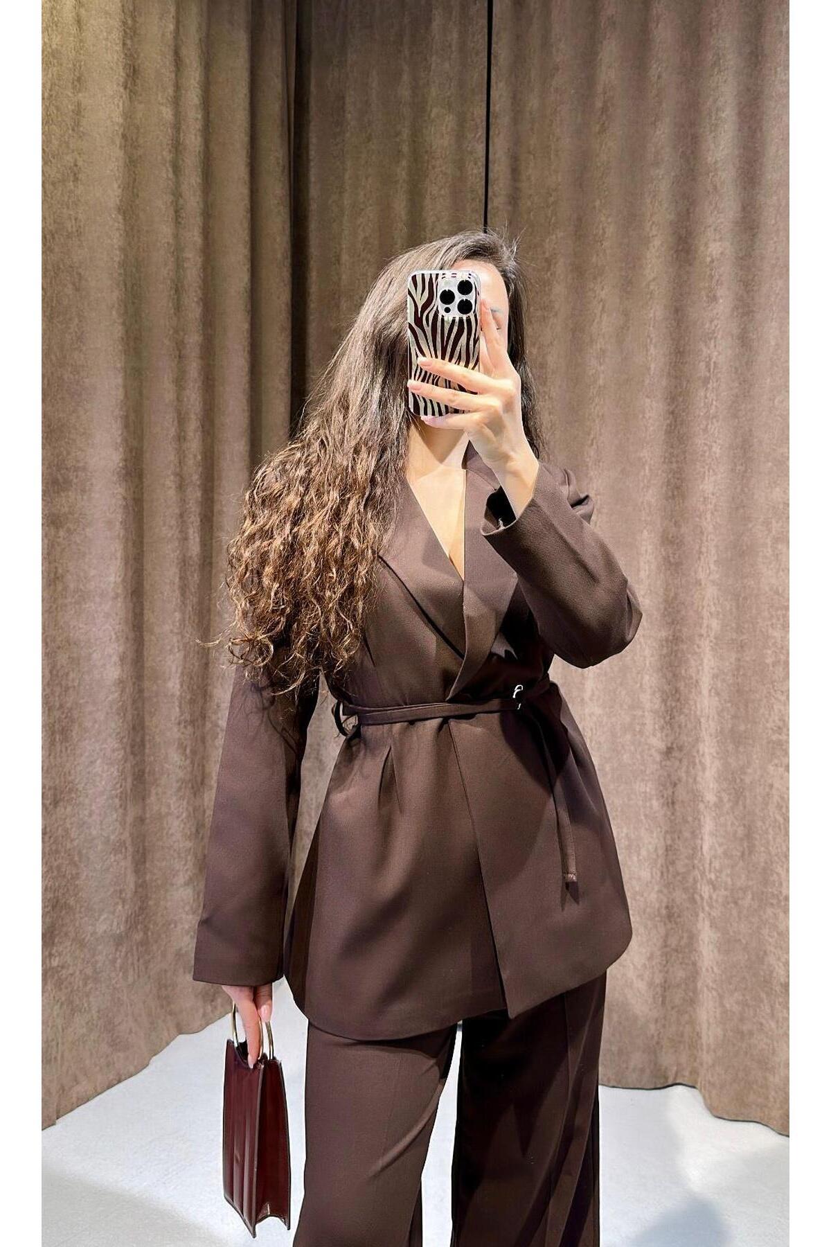 Bel Kemerli Acı Kahve Takım Bel Kemerli Acı Kahve Takım Bel kemerli şık alt üst takım L