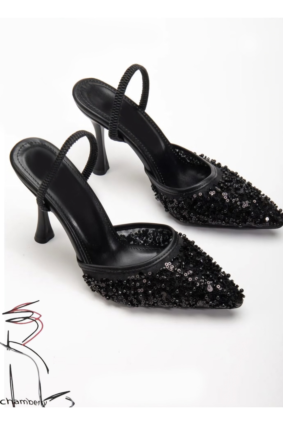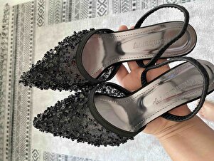 kadın Siyah Filli boncuk detaylı sivri burun topuklu abiye ayakkabı kadın Siyah Filli boncuk detaylı sivri burun topuklu abiye ayakkabı 211 40