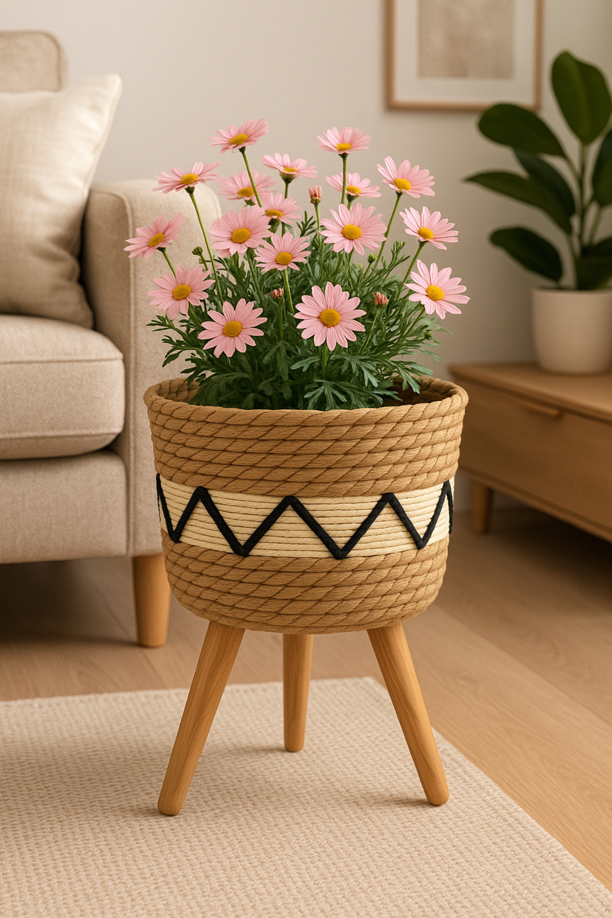 Bambu Saksı Sepeti Ahşap Ayaklı Saksı Bambu Saksı Sepeti Ahşap Ayaklı Saksı bambukahvem