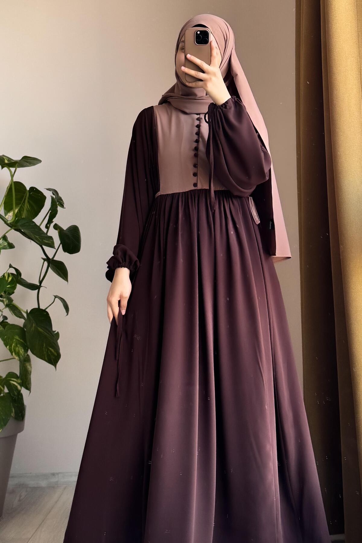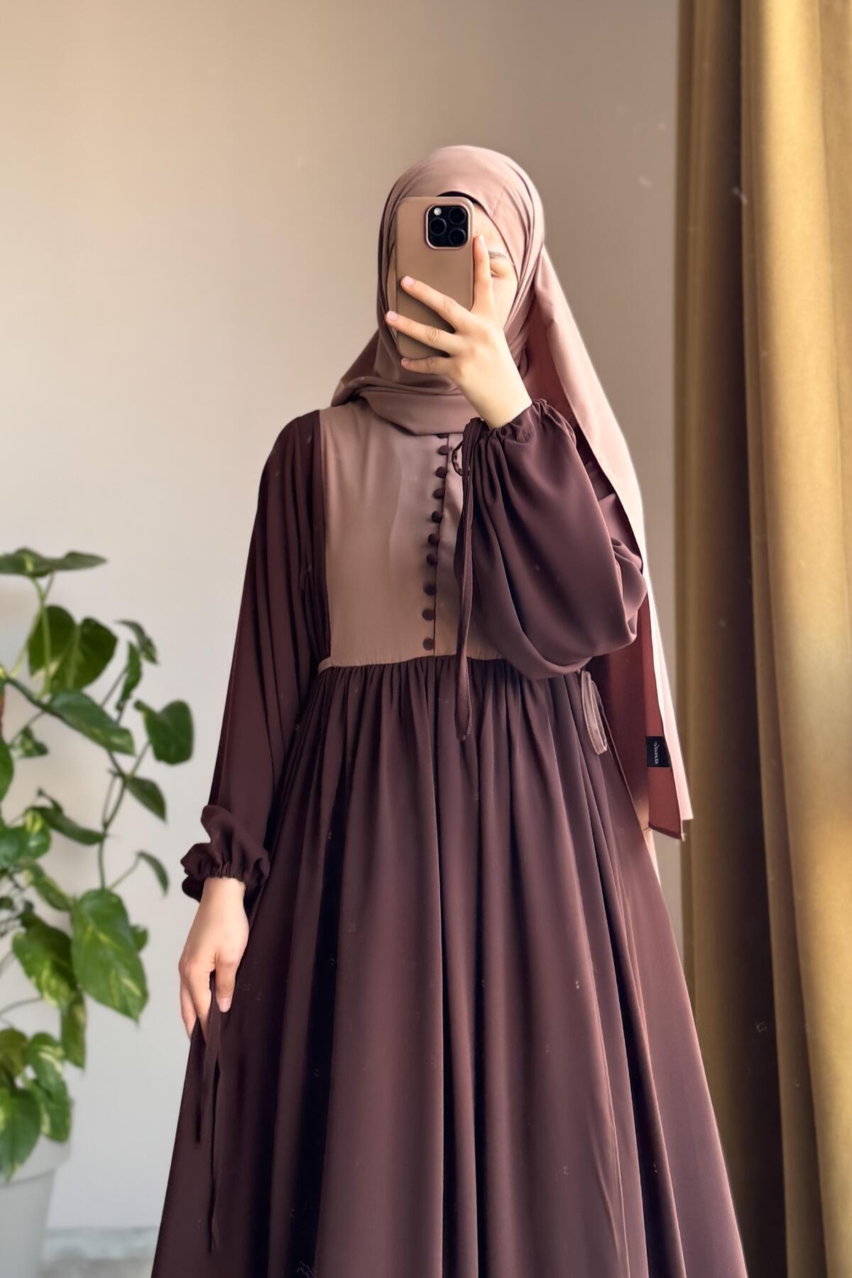 Düğmeli Garni Elbise - Acı kahve/Vizon Düğmeli Garni Elbise - Acı kahve/Vizon A2360 تک سایز