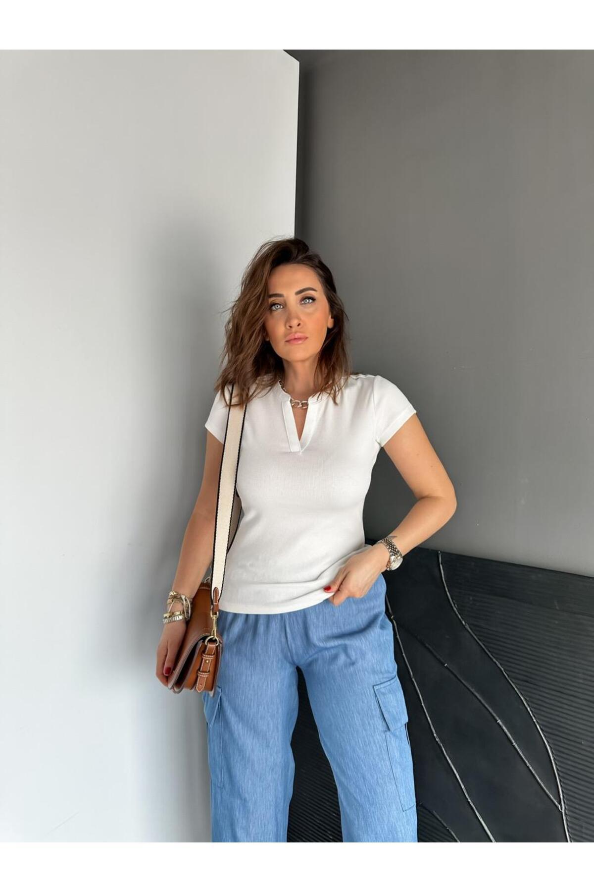 Siyah Oval Kesim V Polo Yaka Kısa Kollu Crop Siyah Oval Kesim V Polo Yaka Kısa Kollu Crop KHFT649S L