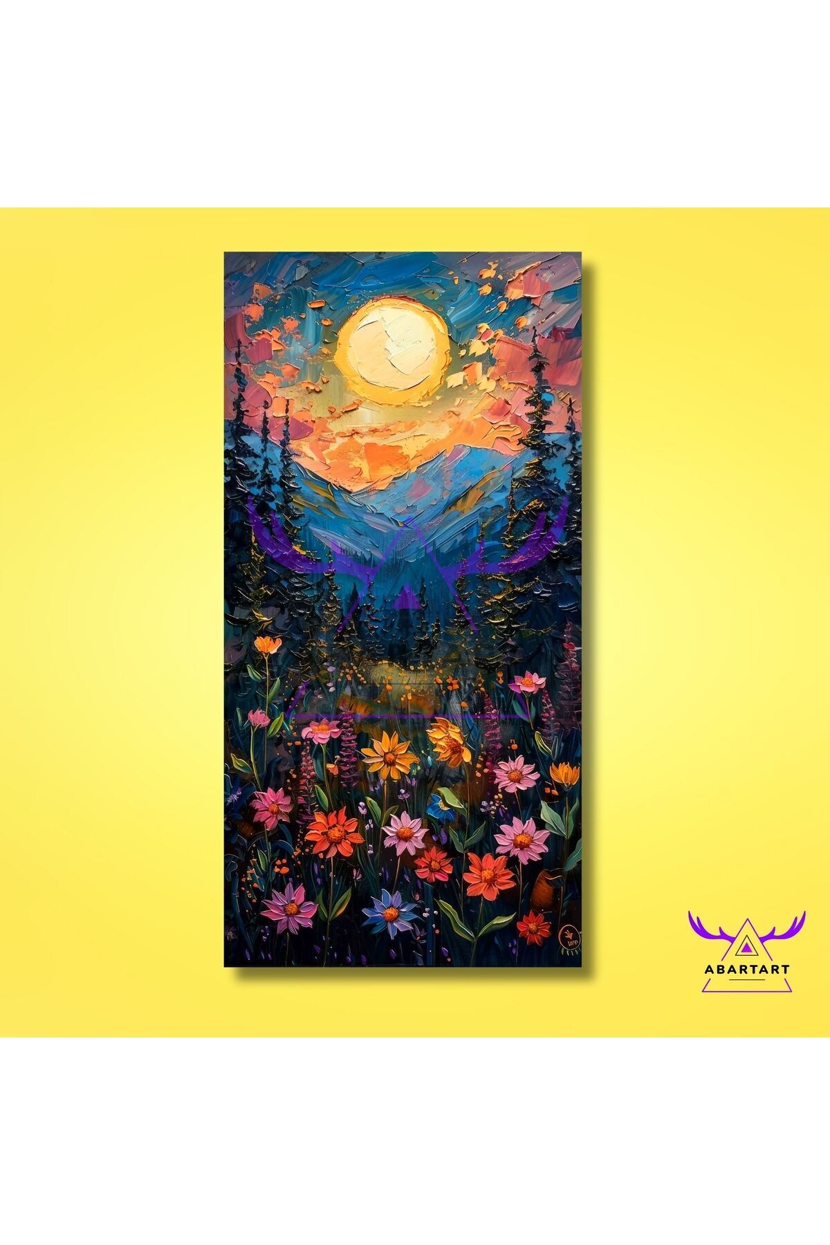Tekli Panoramik Dikey Kanvas Yağlı Boya Görünümlü Renkli Papatyalar ve Güneş Tekli Panoramik Dikey Kanvas Yağlı Boya Görünümlü Renkli Papatyalar ve Güneş ABARTART-TPDK-0018 70 x 140