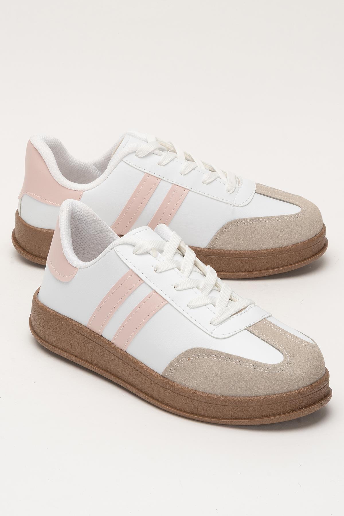 Unisex Rahat Hafif Spor Ayakkabı BEYAZ - PUDRA Unisex Rahat Hafif Spor Ayakkabı BEYAZ - PUDRA 7472 40