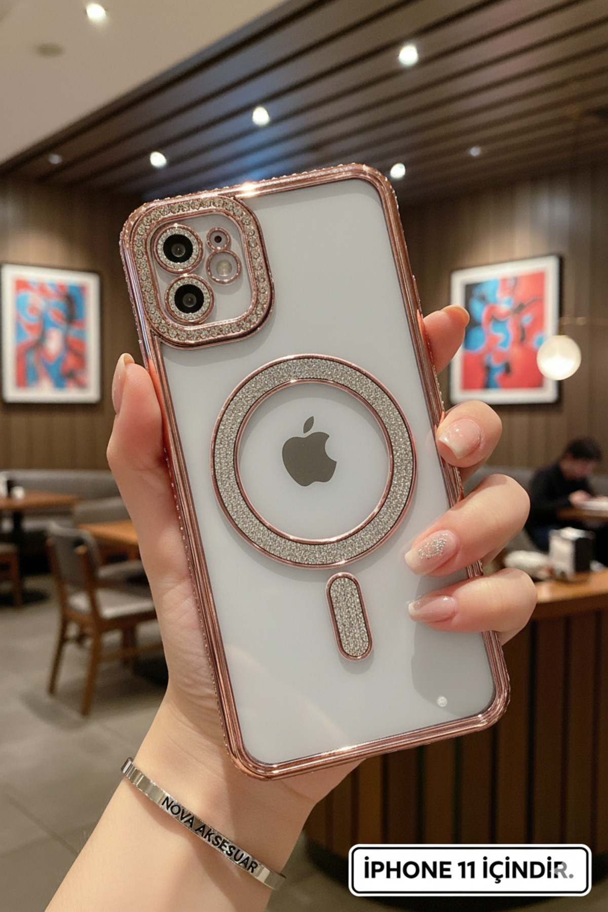 مشخصات فنی Apple iPhone 11 Kılıf Pırlanta Taş Magsafe Şarj Özellikli Şık Karetta Silikon Kapak