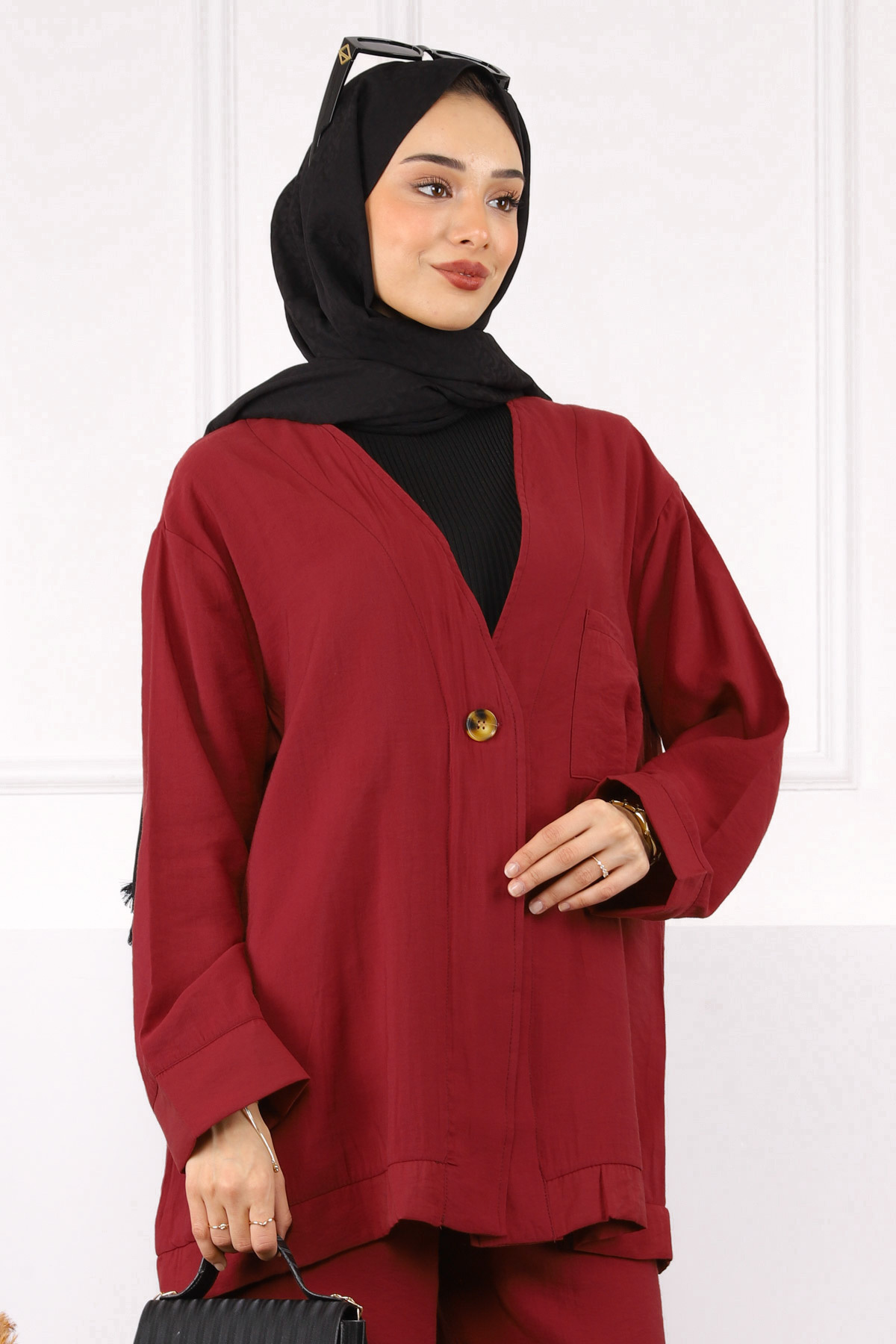 Bordo Tek Düğmeli Ceket Pantolonlu Takım Bordo Tek Düğmeli Ceket Pantolonlu Takım IMJ006536 2